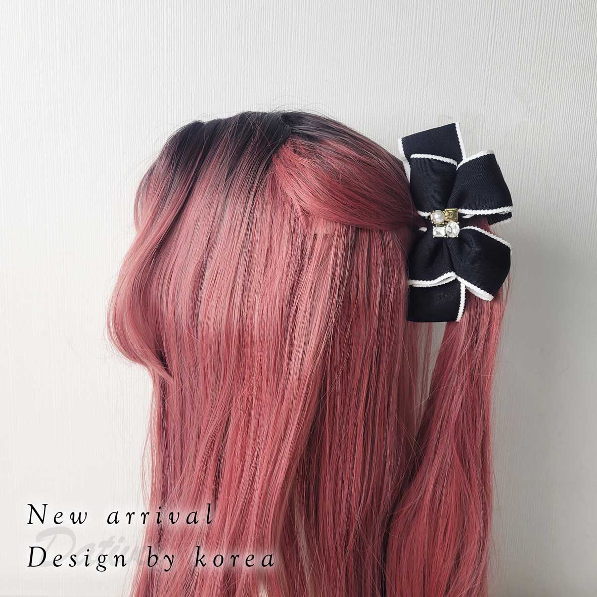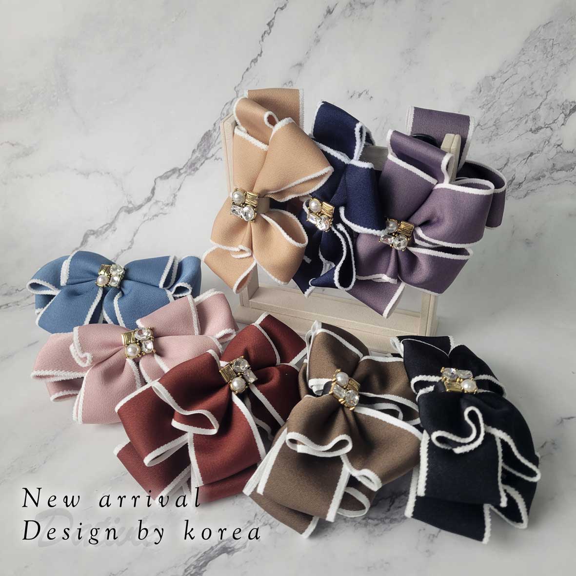 韓國 多色 緞帶 造型 鑲鑽 蝴蝶結 相交夾