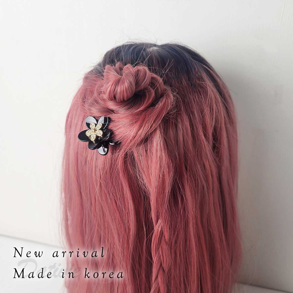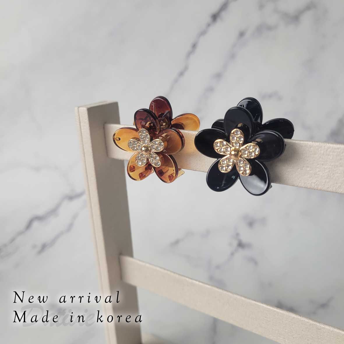 韓國 小花 鑲鑽 造型 兩色 透感 小抓夾