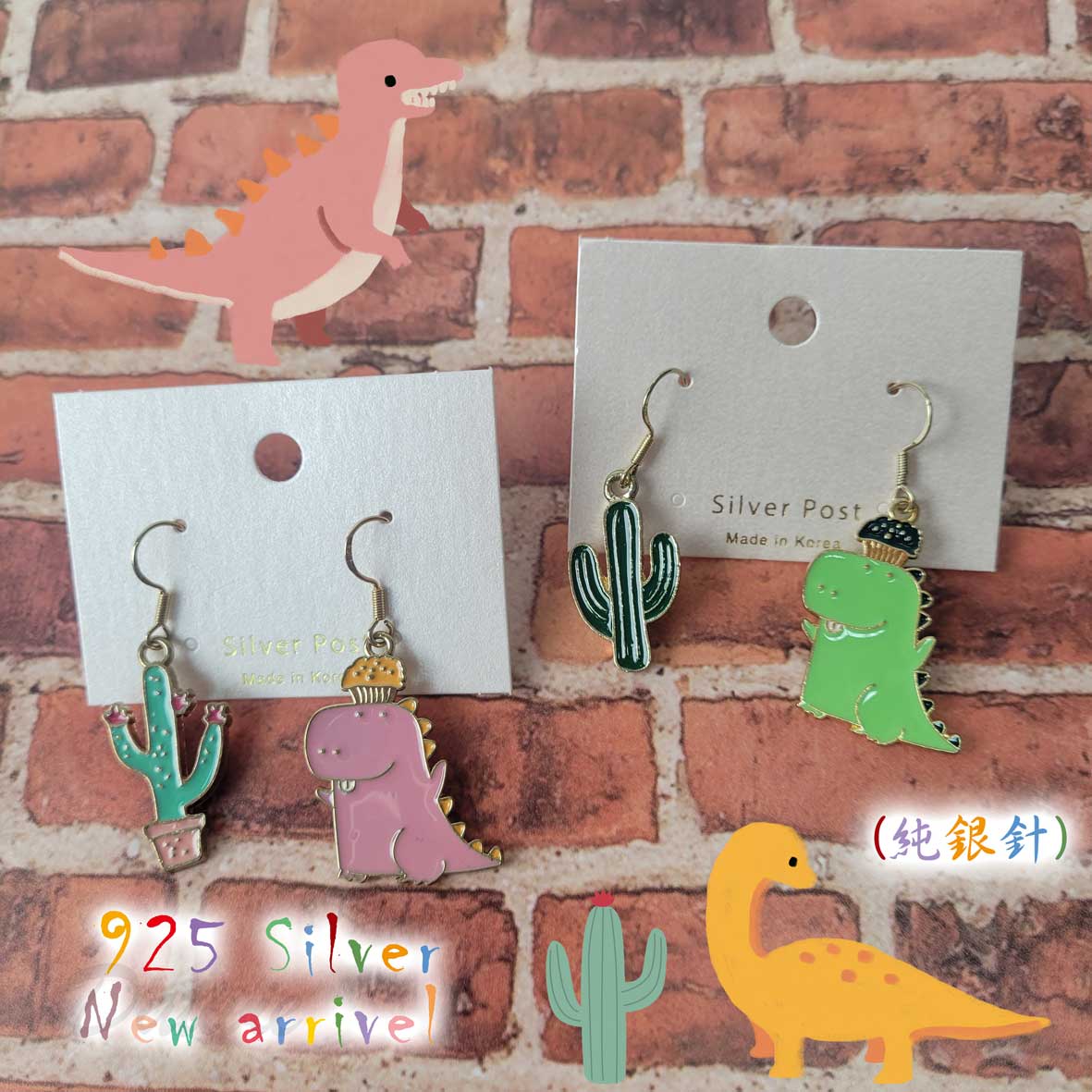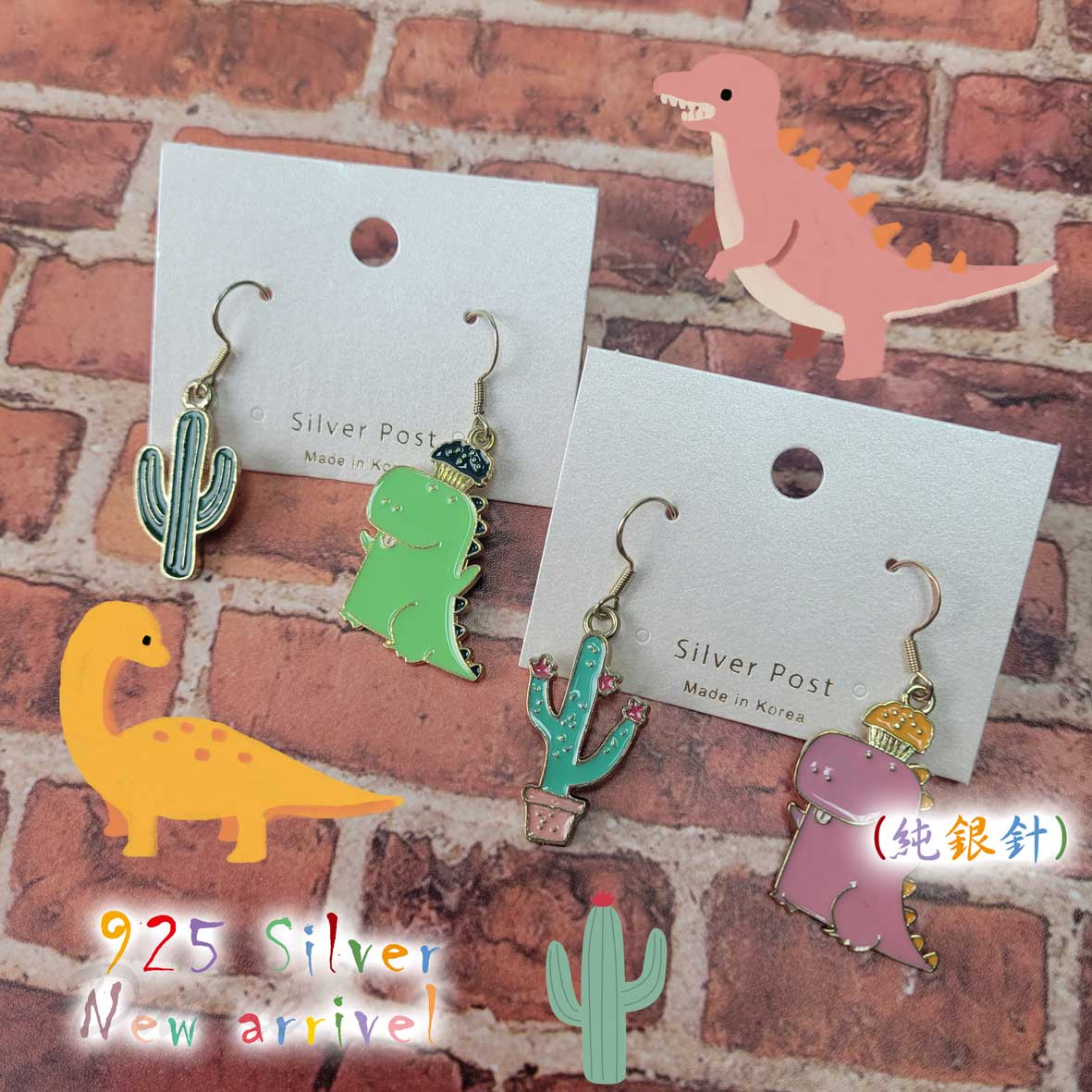 流行 可愛 恐龍 仙人掌 造型 兩色 耳環
