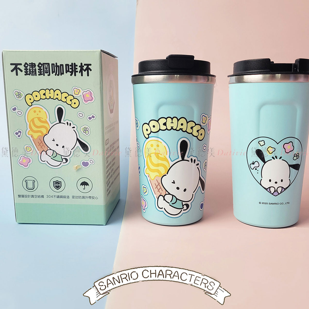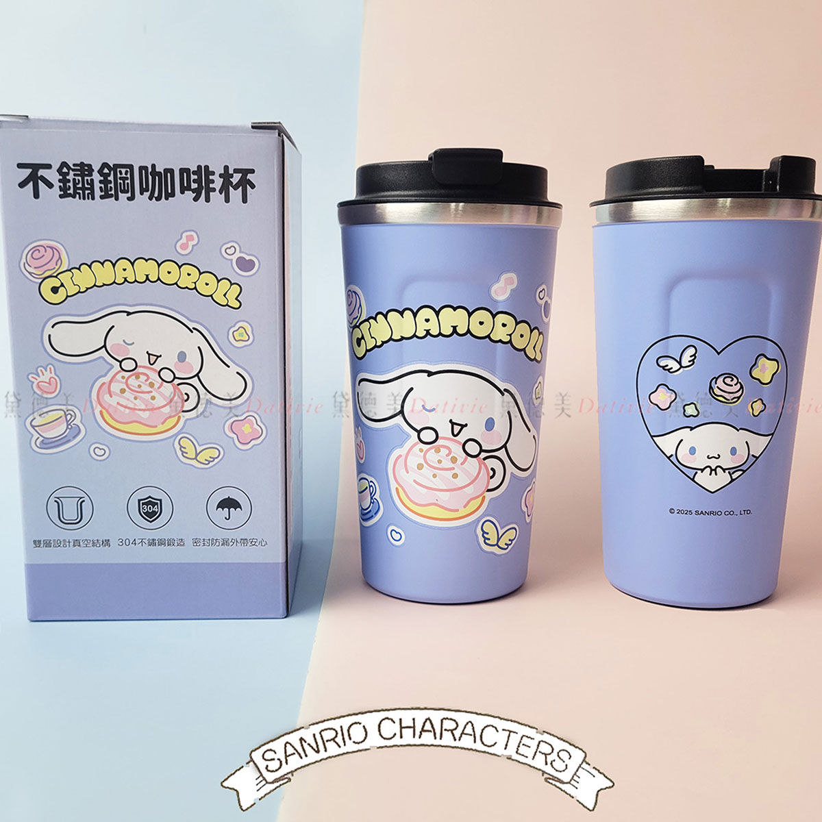 不鏽鋼咖啡杯510ml-三麗鷗 SANRIO 正版授權 【款式】KITTY/大耳狗/帕恰狗/庫洛米 【尺寸】約9x16.8 cm 【容量】510 ml 【材質】杯身:高級不鏽鋼/內層:304不鏽鋼 /上蓋:聚丙烯/密封圈:食品級矽膠 【耐溫】瓶身:-10~110℃/瓶蓋:0~110℃/密封圈:-20~110℃ 【產地】中國(台灣監製)