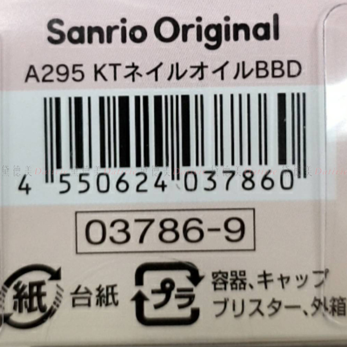 指緣油-三麗鷗 Sanrio 日本進口正版授權 【款式】KITTY/庫洛米/美樂蒂 【尺寸】約3.3×2.5×11cm 【材質】礦物油、氫化苯乙烯/異戊二烯共聚物、氫化聚異丁烯、荷荷巴籽油、生育酚乙酸酯、香料 【香氣】桂花茶香 【產地】中國(日本監製)