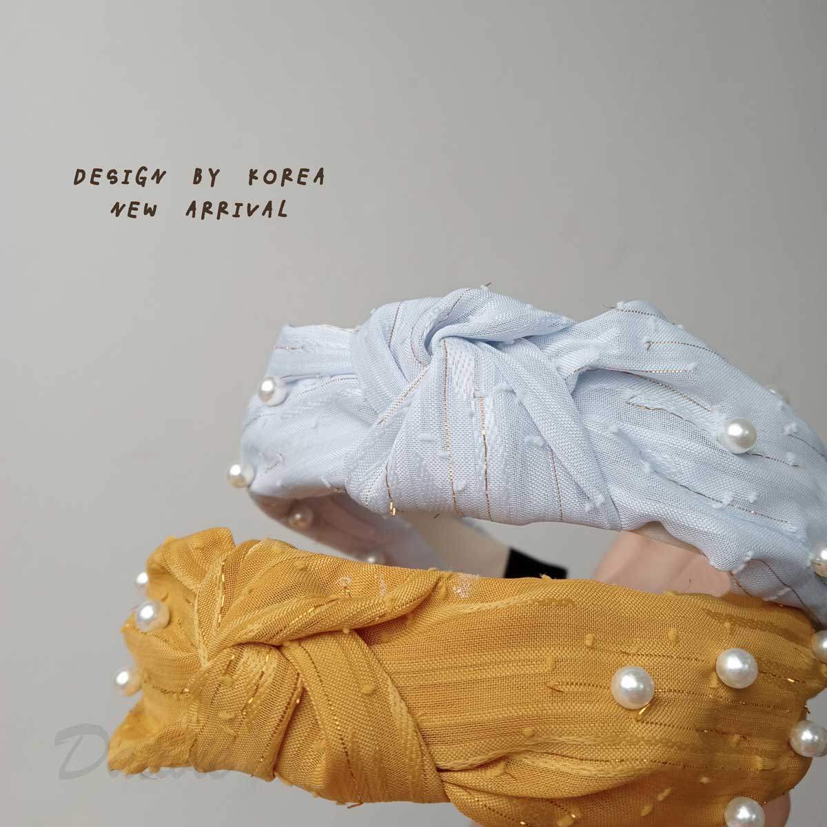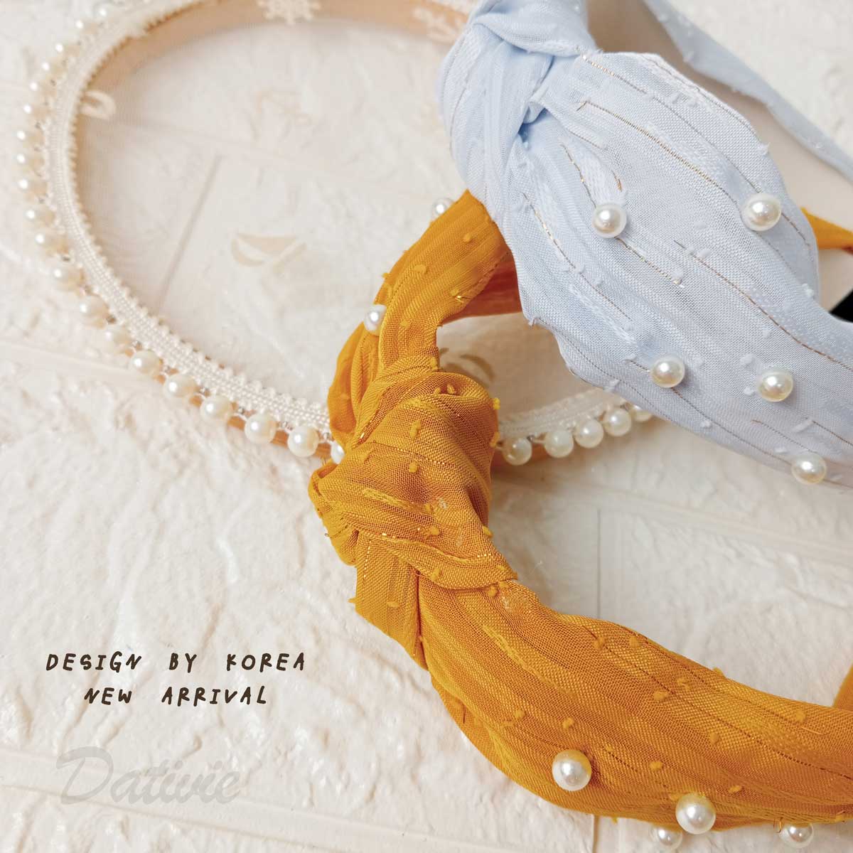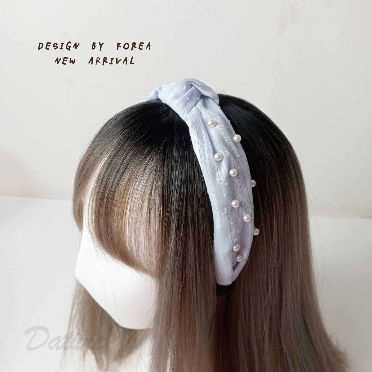 韓風 珍珠 扭結 紡紗 兩色 髮箍