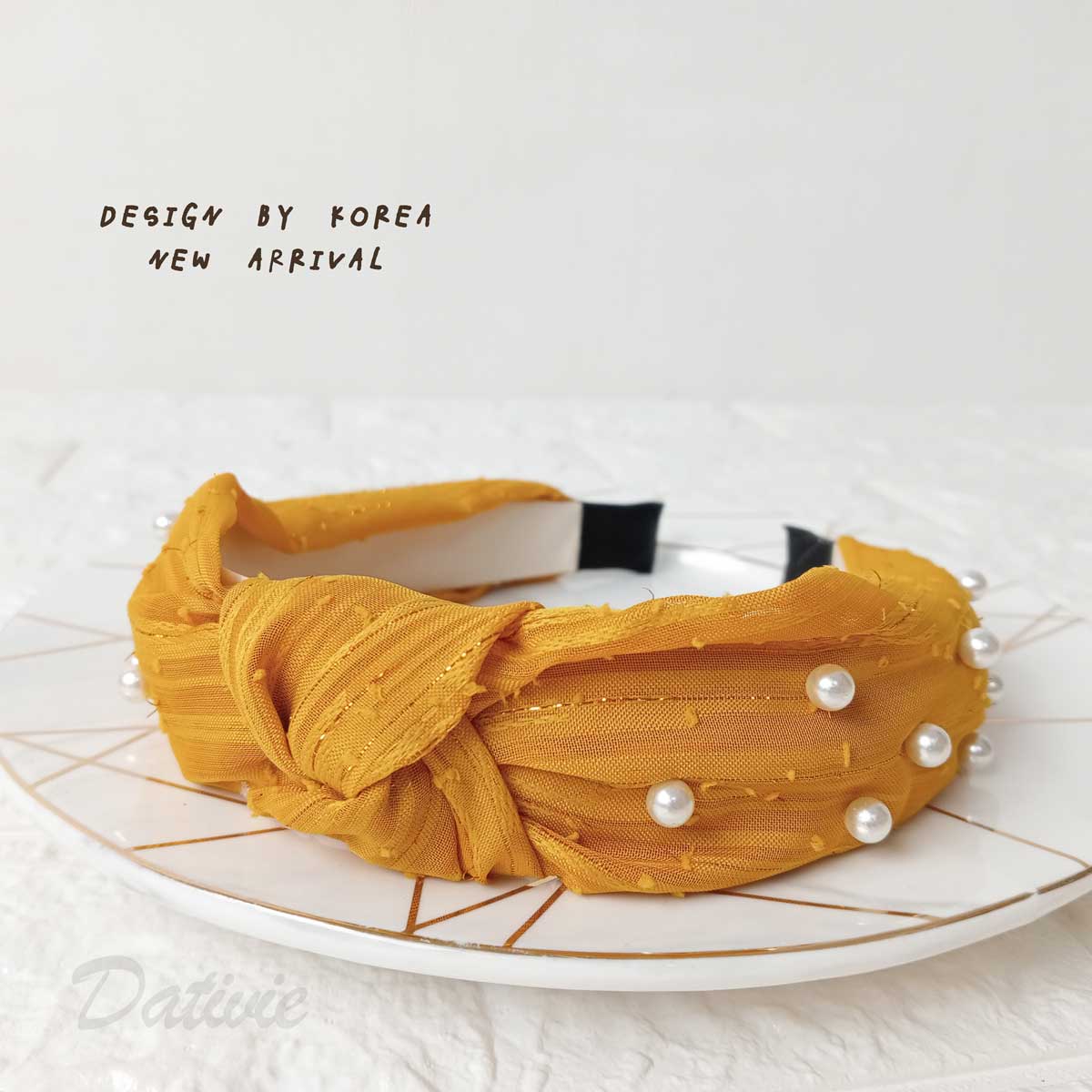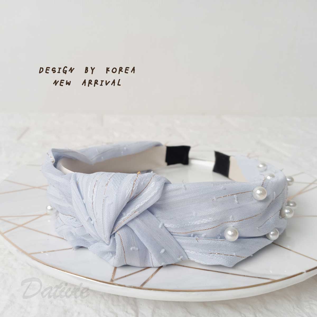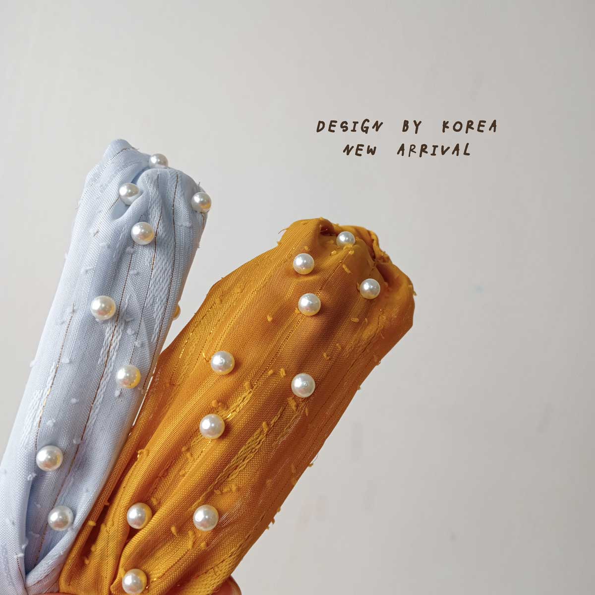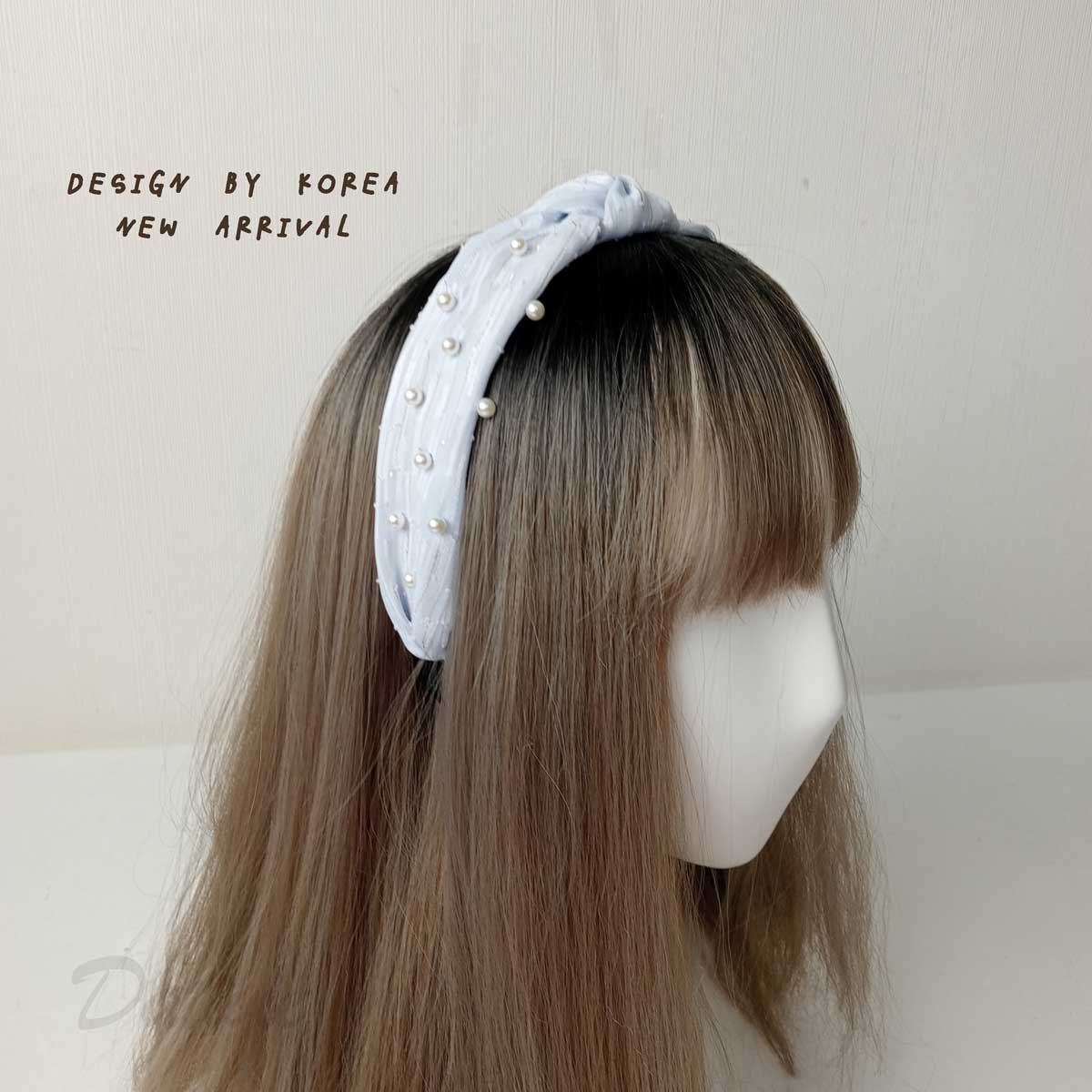 韓風 珍珠 扭結 紡紗 兩色 髮箍