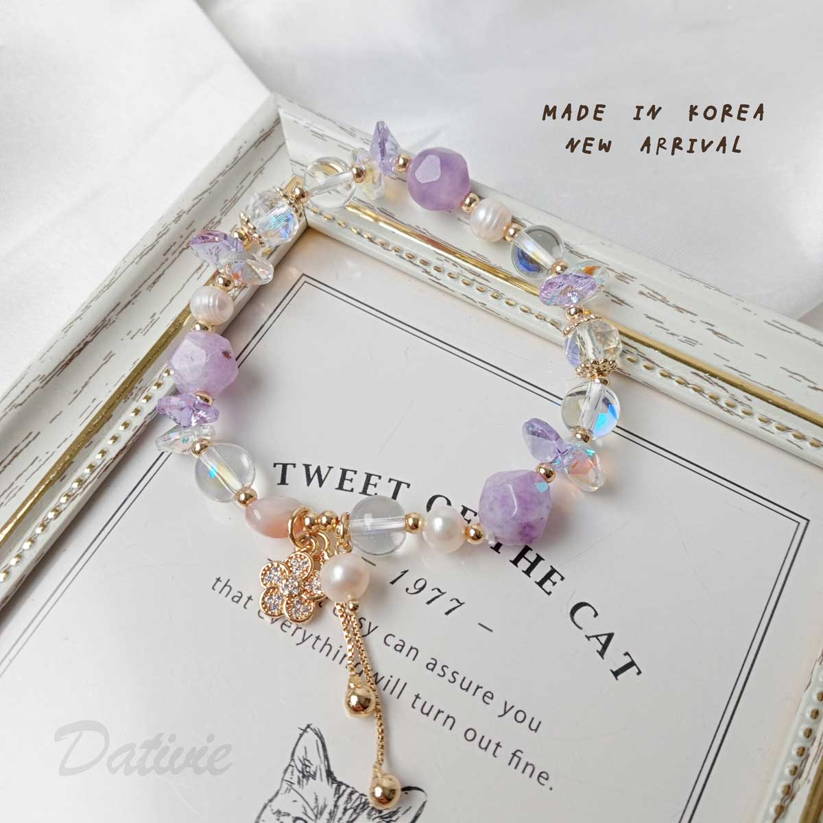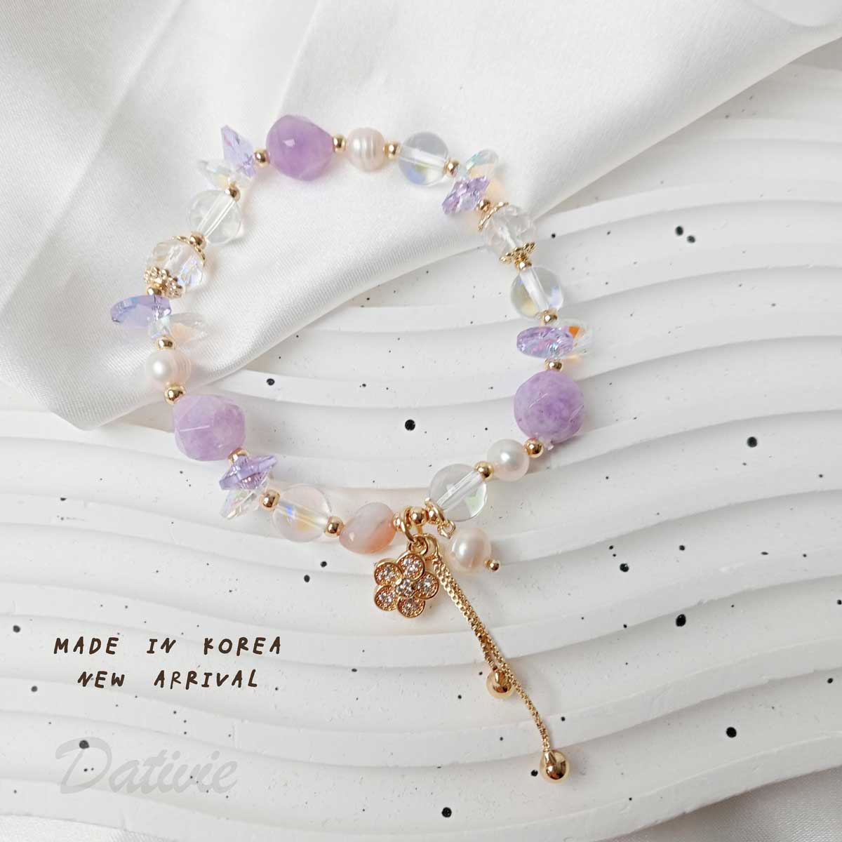 韓國 琉璃珠 鑲鑽 水晶 小花 珍珠 造型 手鍊