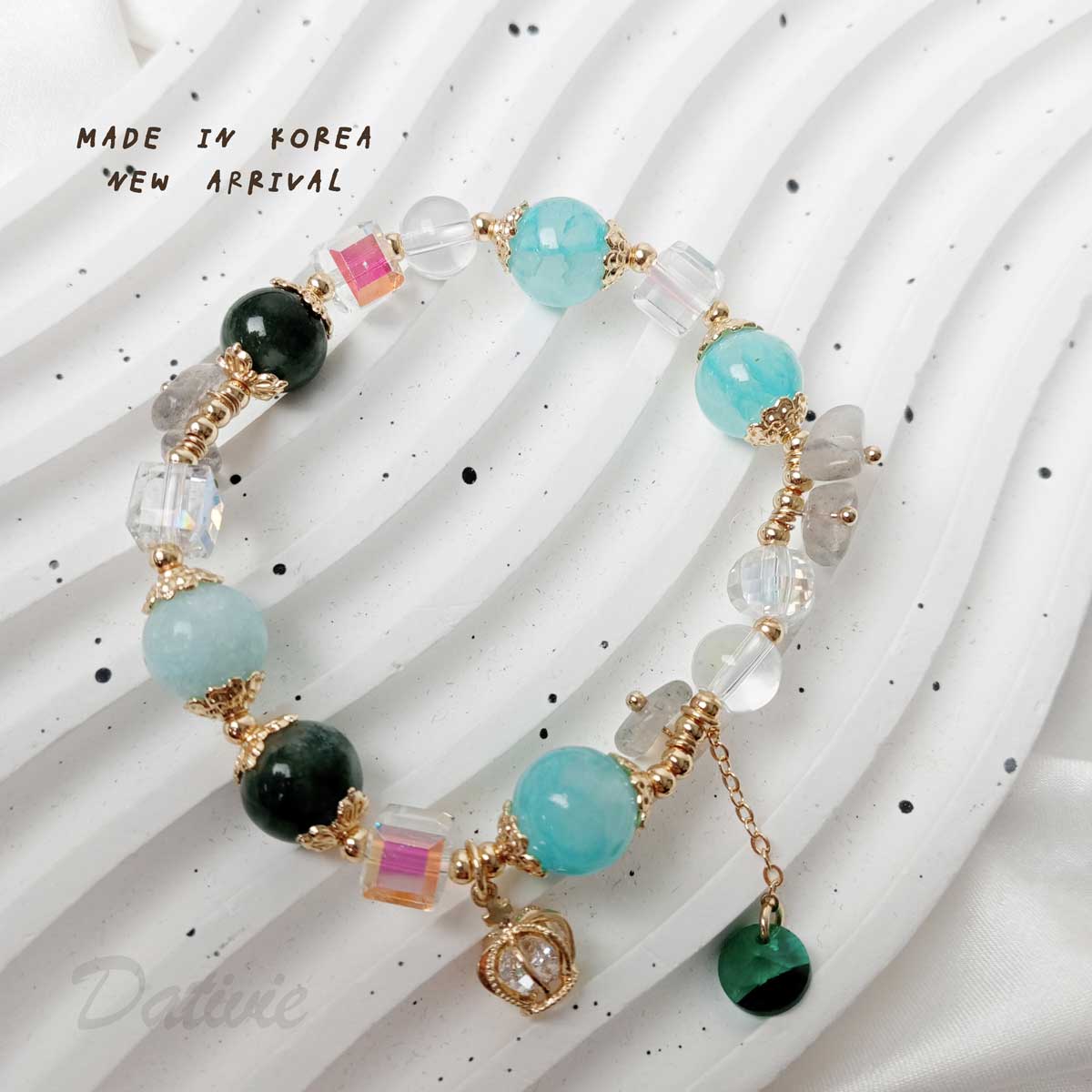 韓國 琉璃珠 鑲鑽 水晶 綠珍珠 造型 手鍊