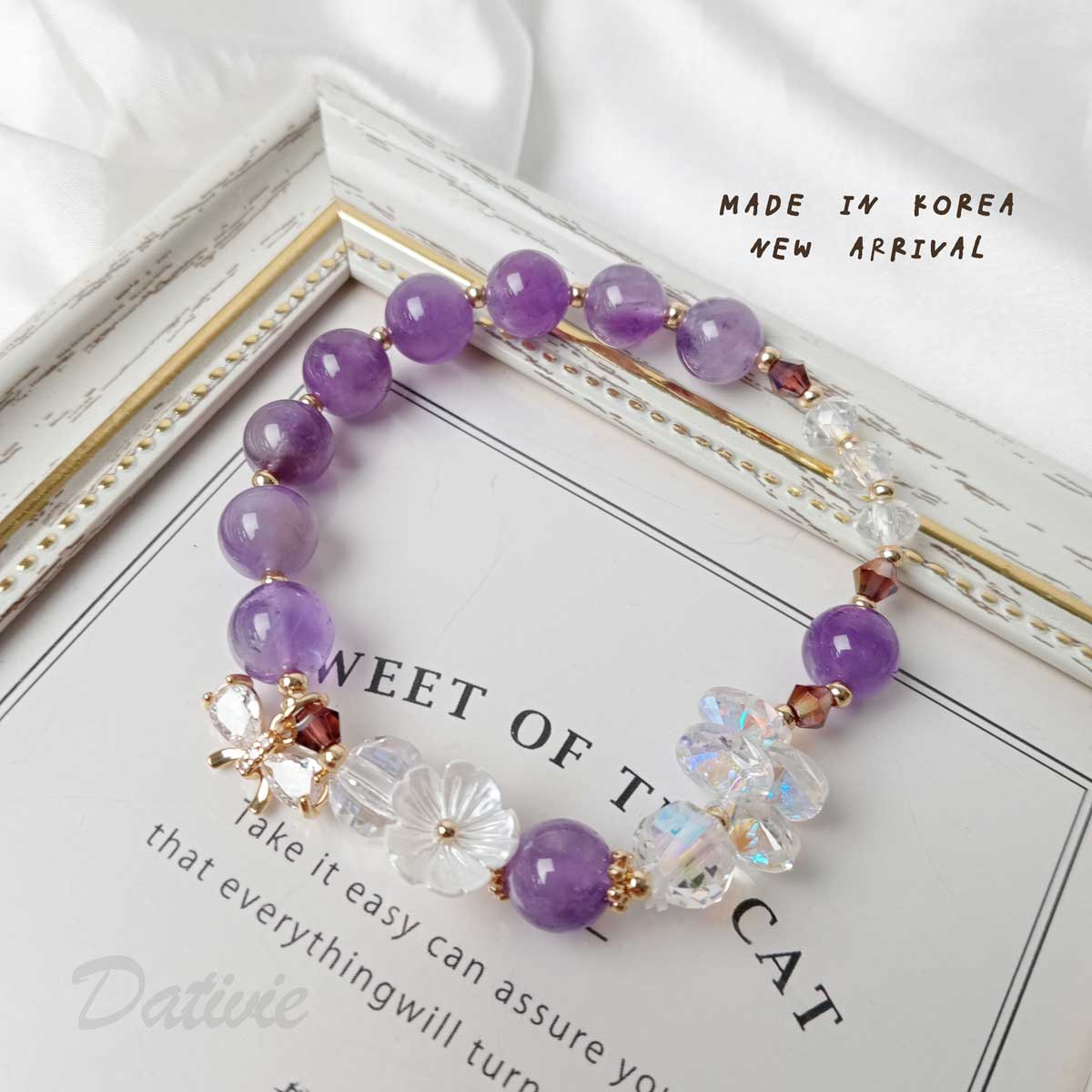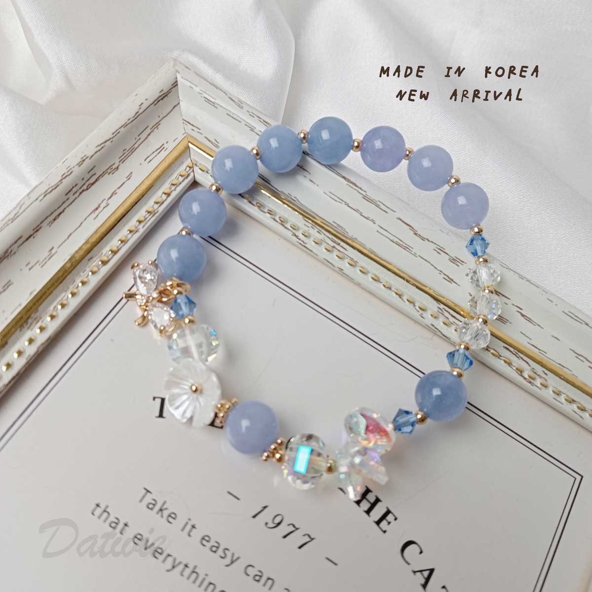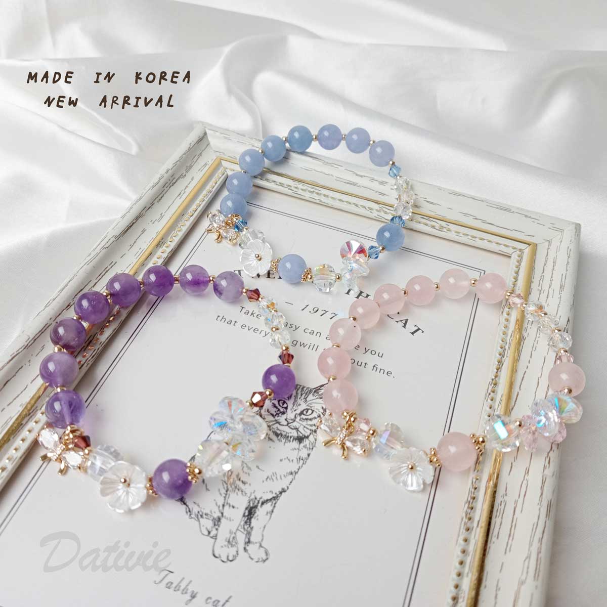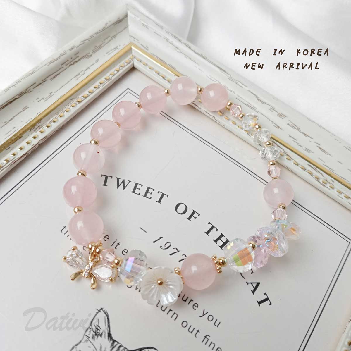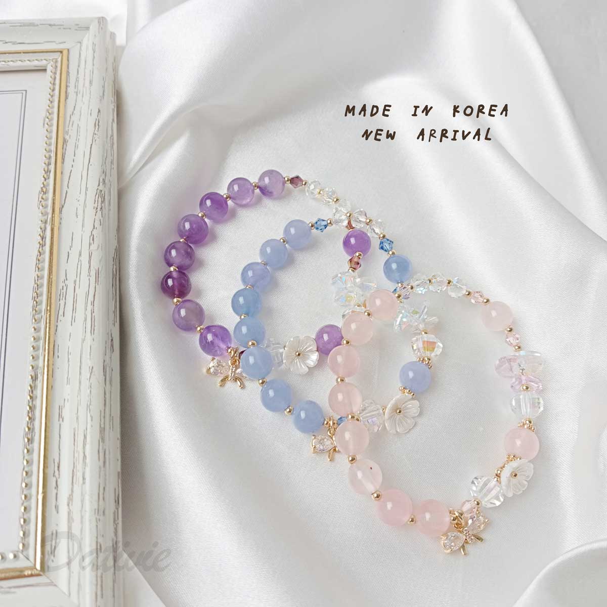 韓國 琉璃珠 鑲鑽 水晶 蝴蝶結 小花 造型 三色 手鍊