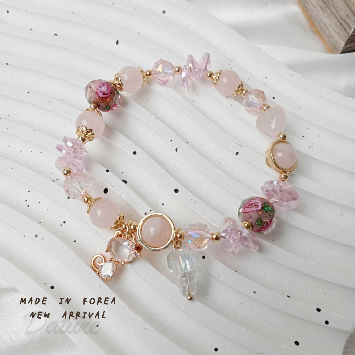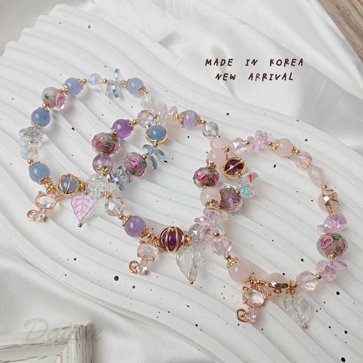 韓國 琉璃珠 玫瑰 小貓 造型 三色 手鍊