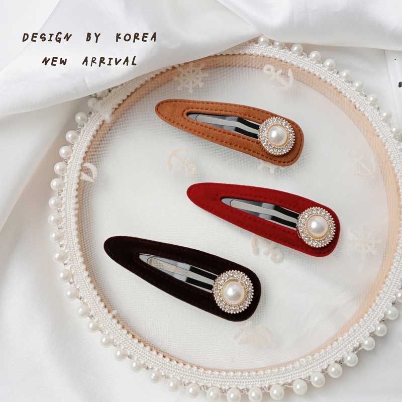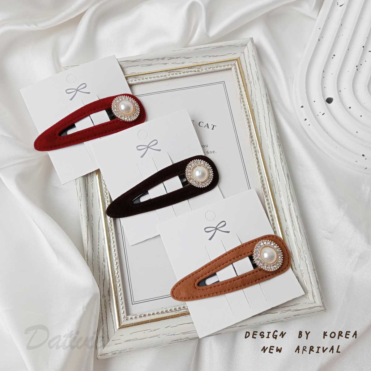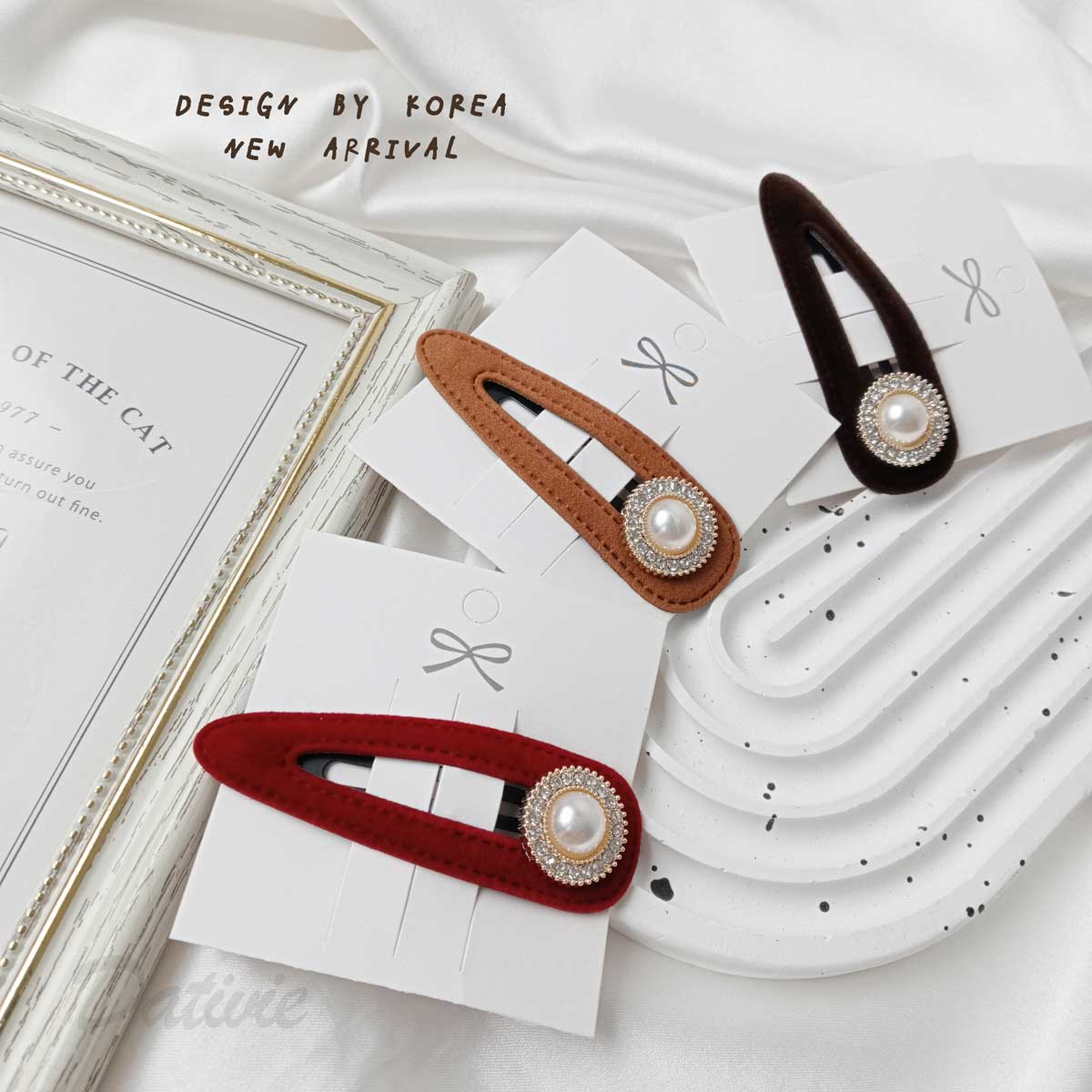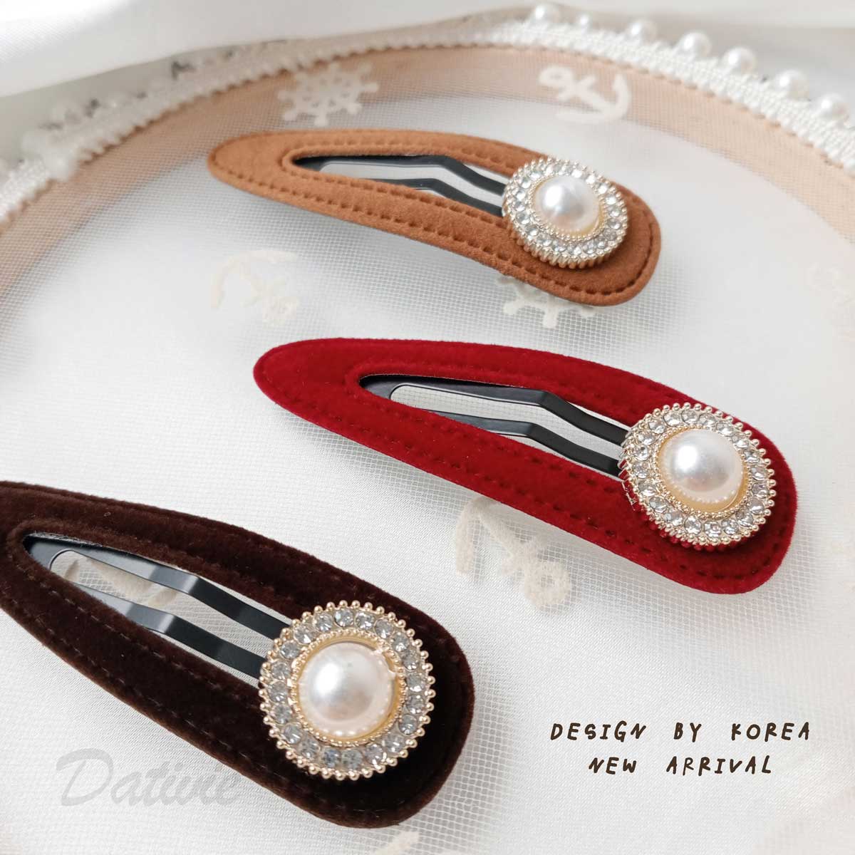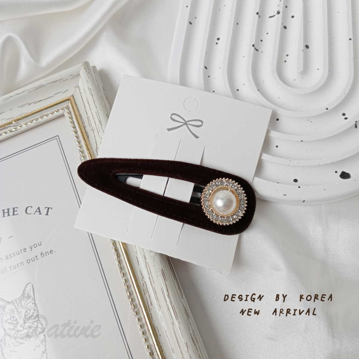 絲絨 質感 珍珠 造型 三色 撇撇夾