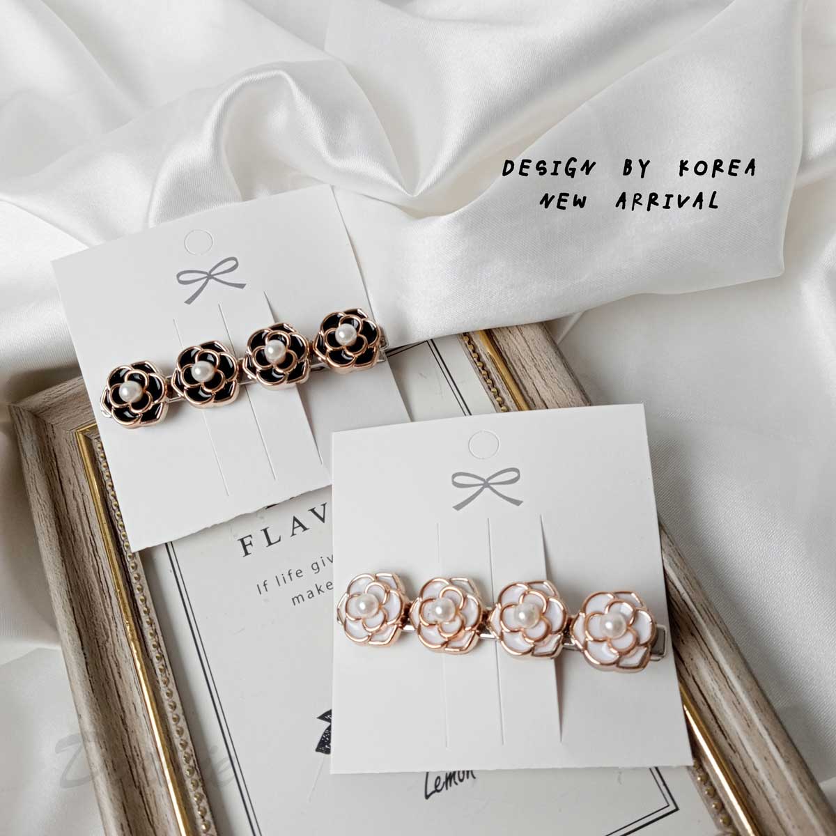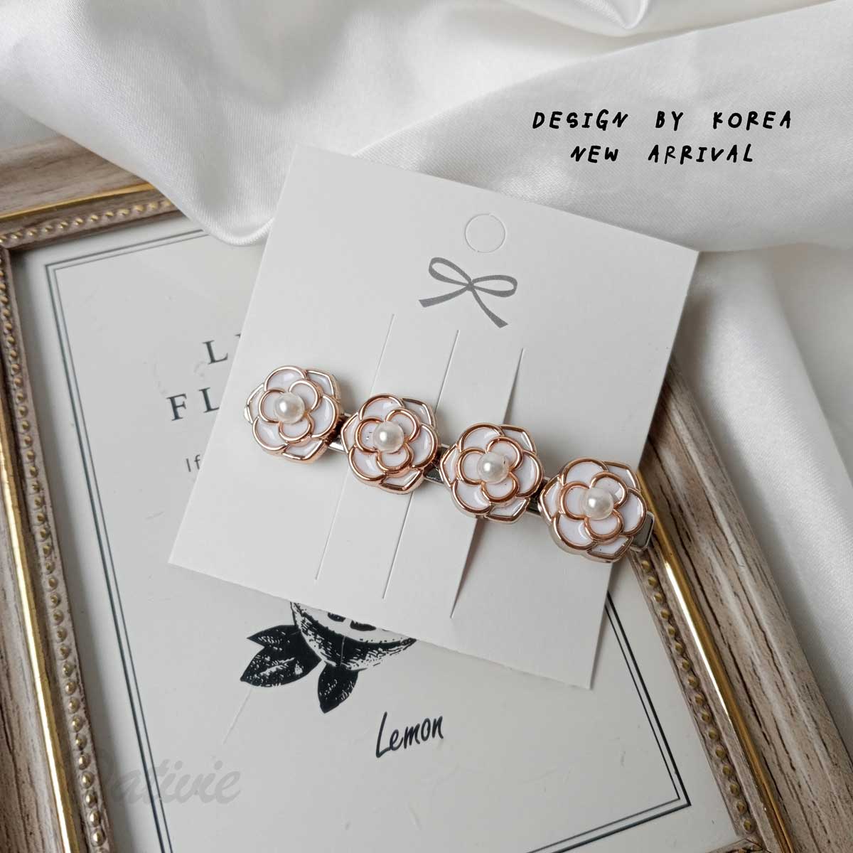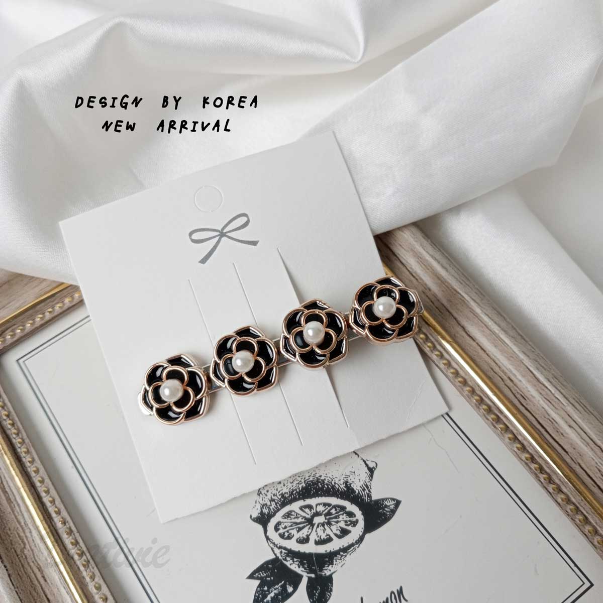 山茶花 珍珠 造型 質感 兩色 壓夾