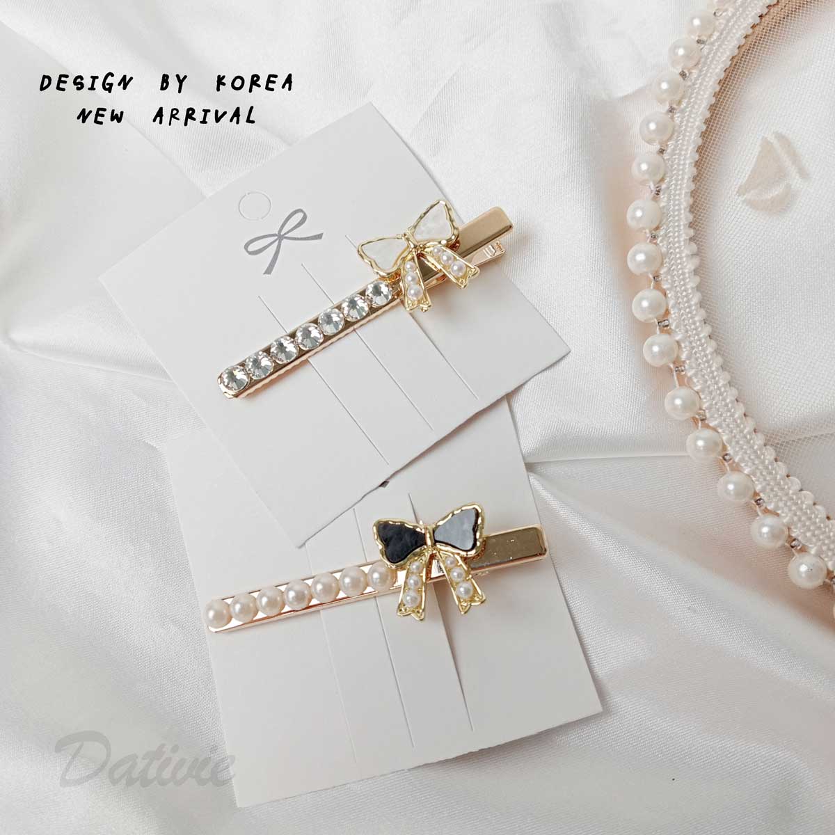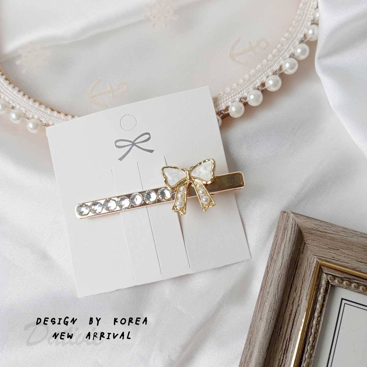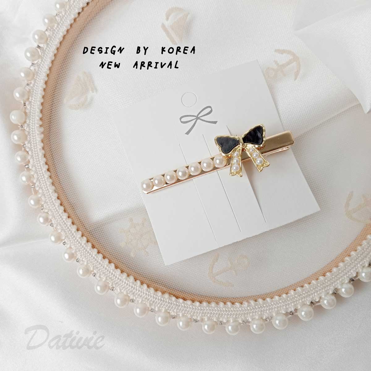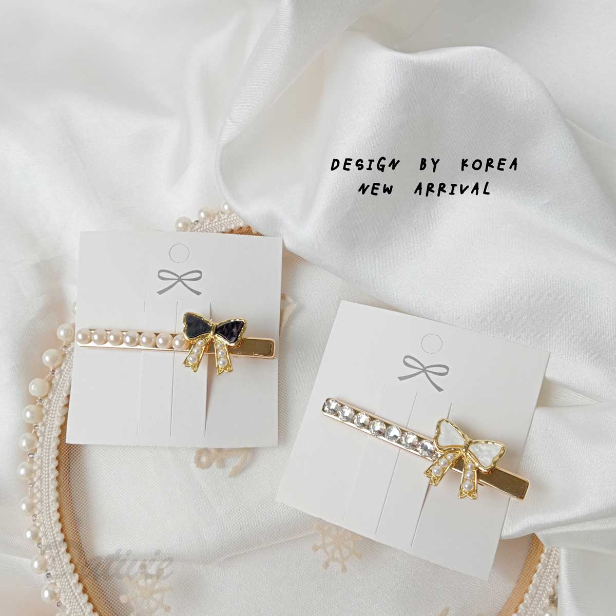 質感 金邊 珍珠 蝴蝶結 造型 兩色 壓夾