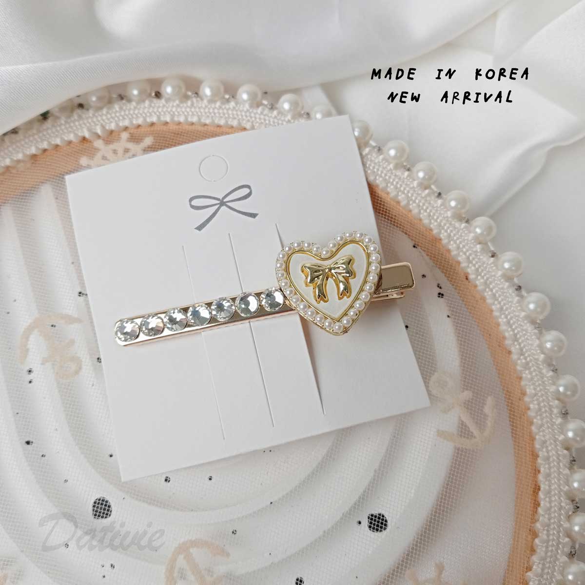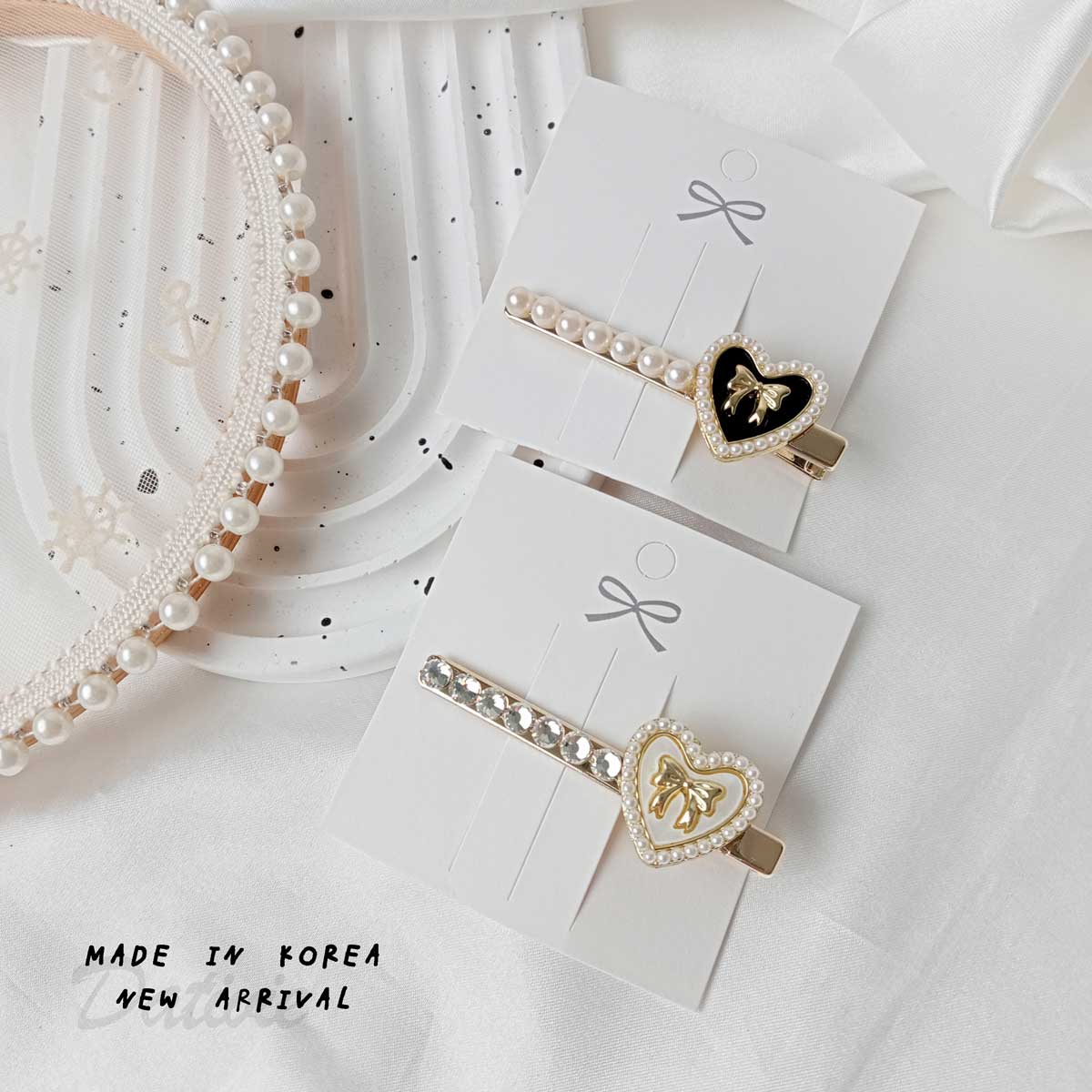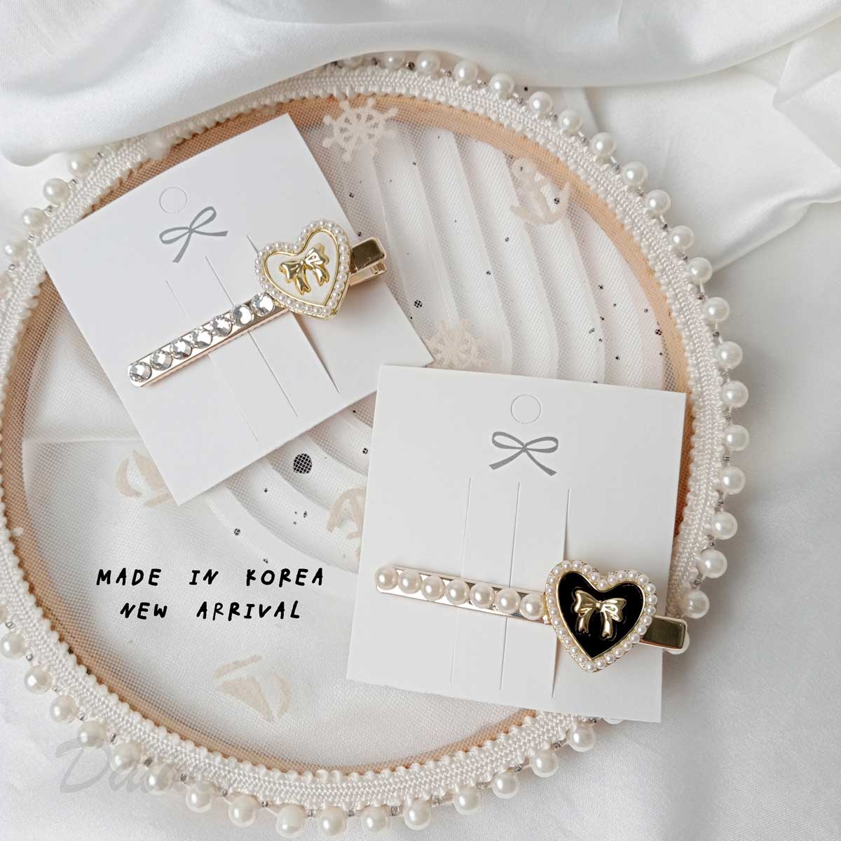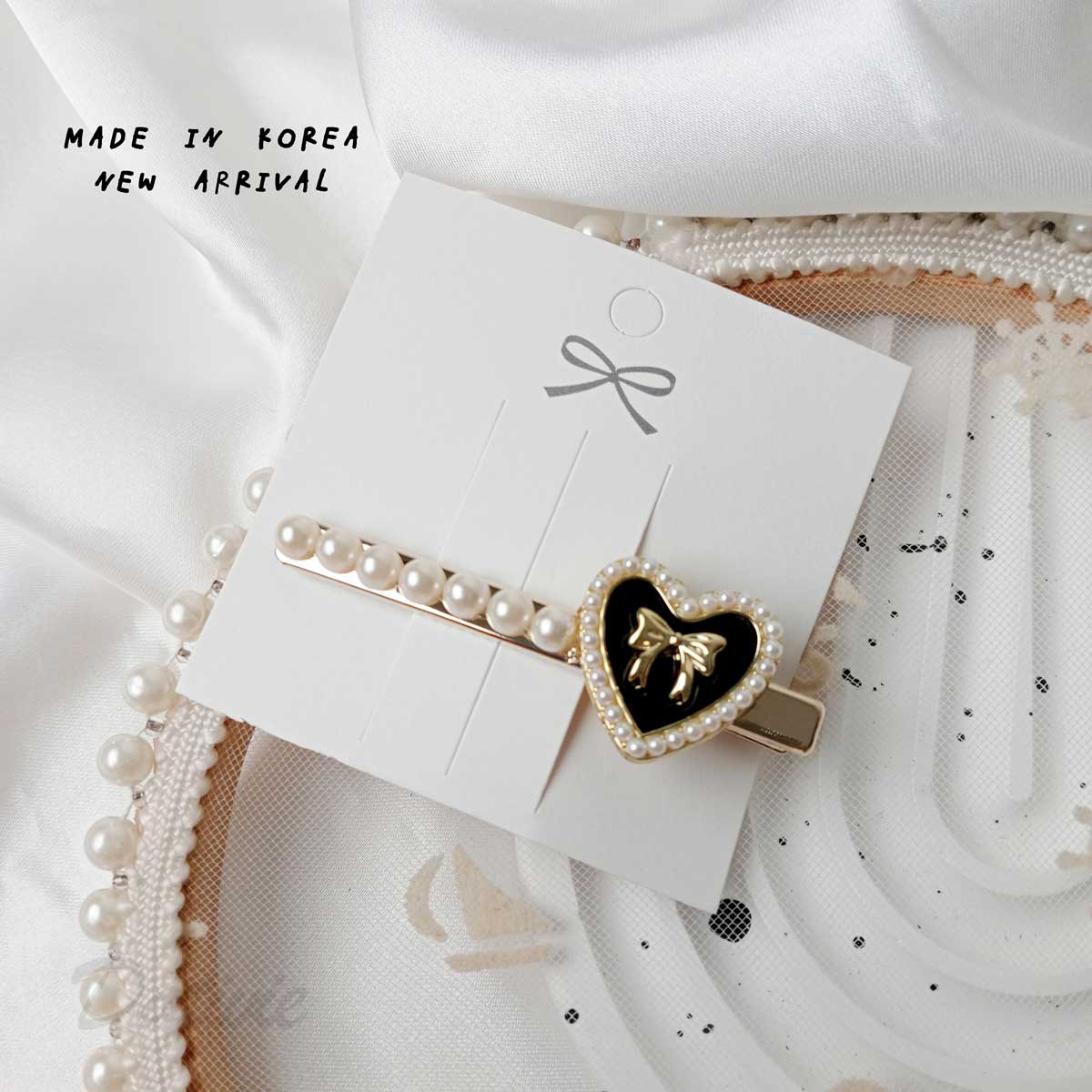 珍珠 愛心 蝴蝶結 金邊 造型 質感 兩色 壓夾