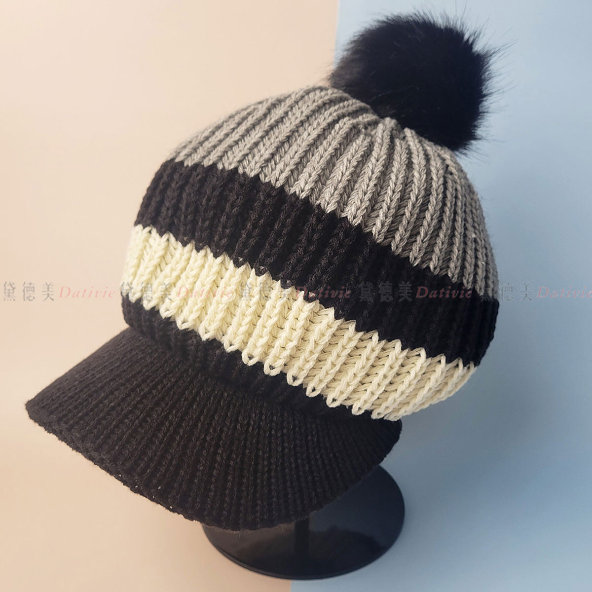 毛球 編織 保暖 鴨舌帽 毛帽