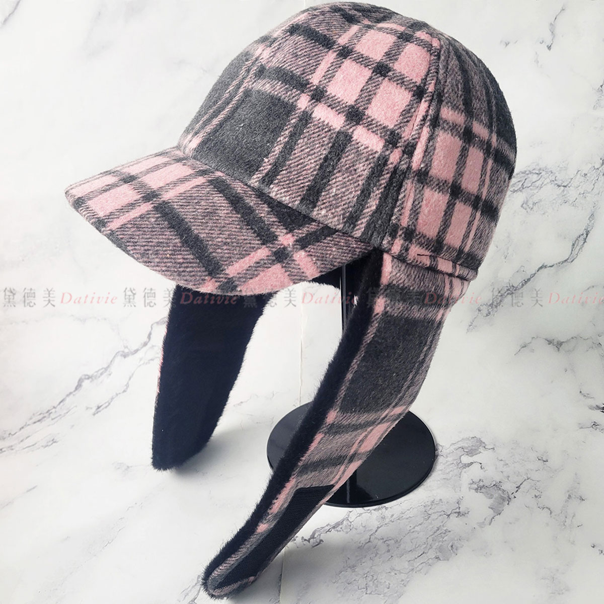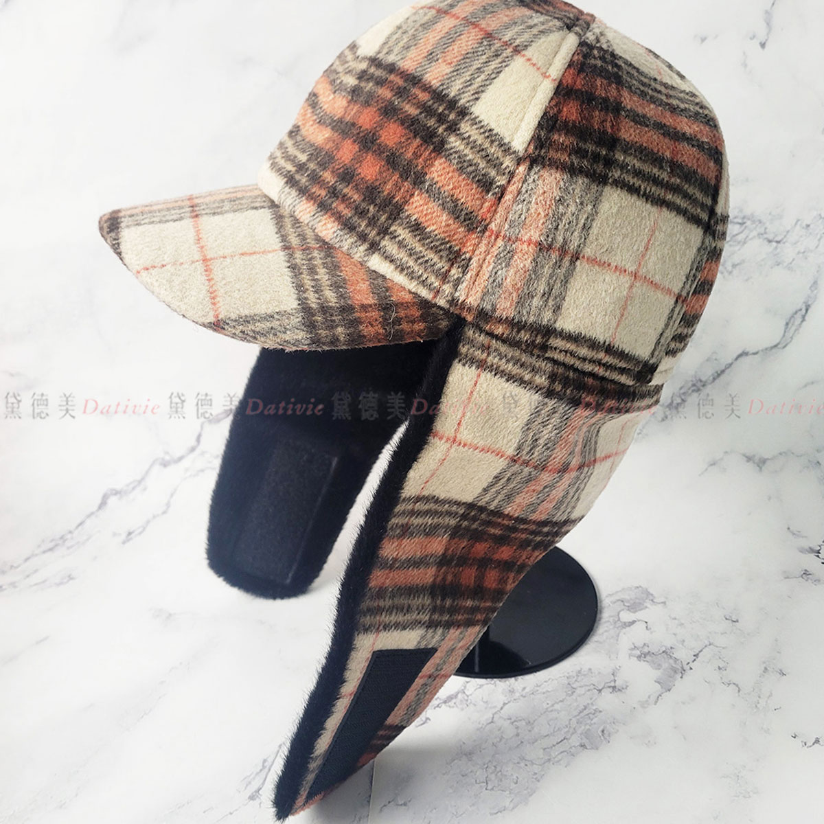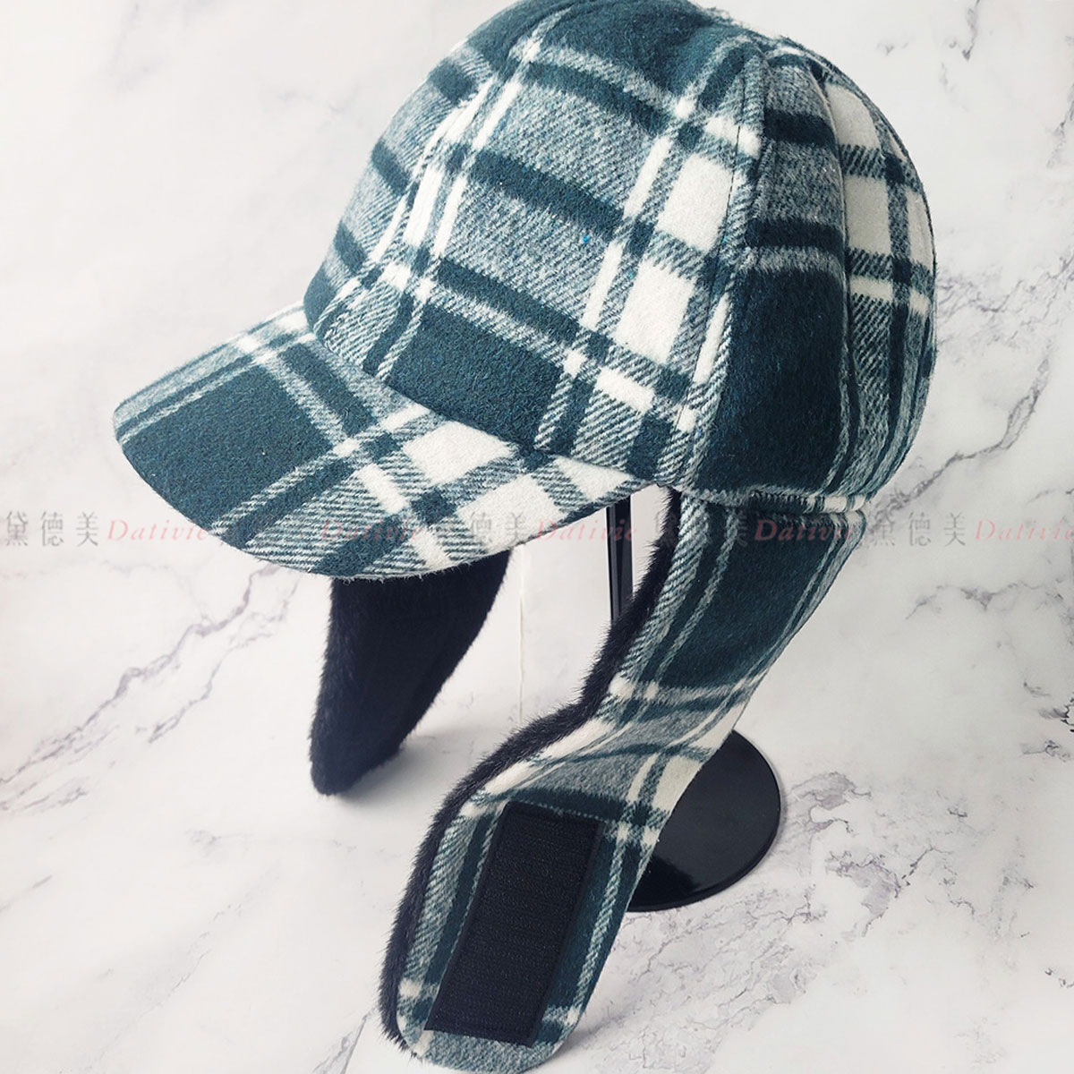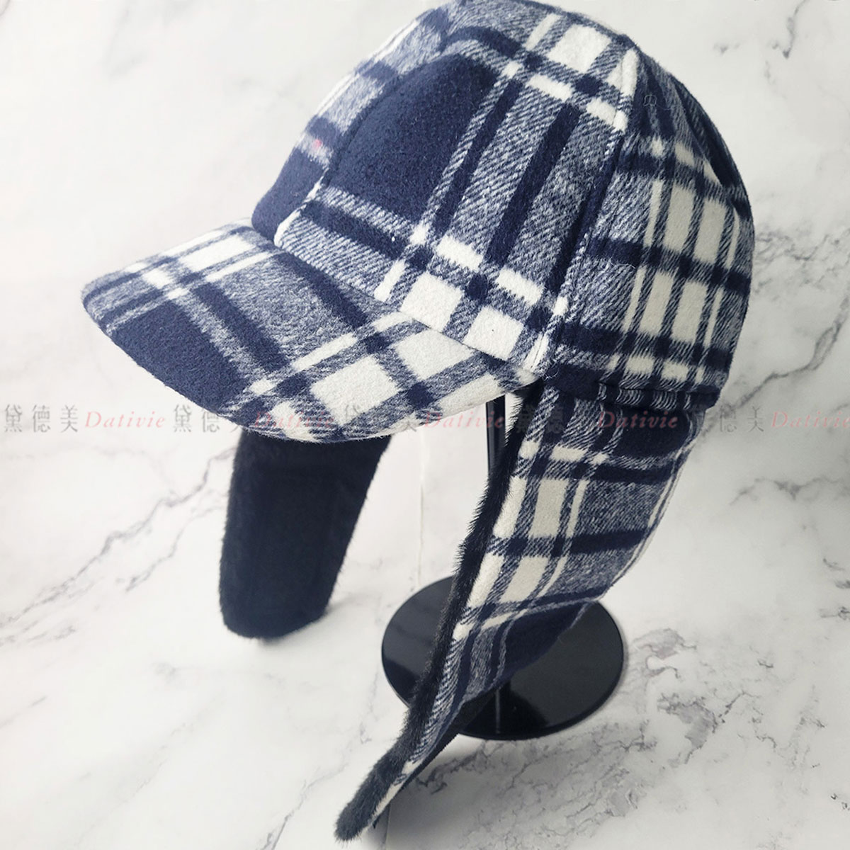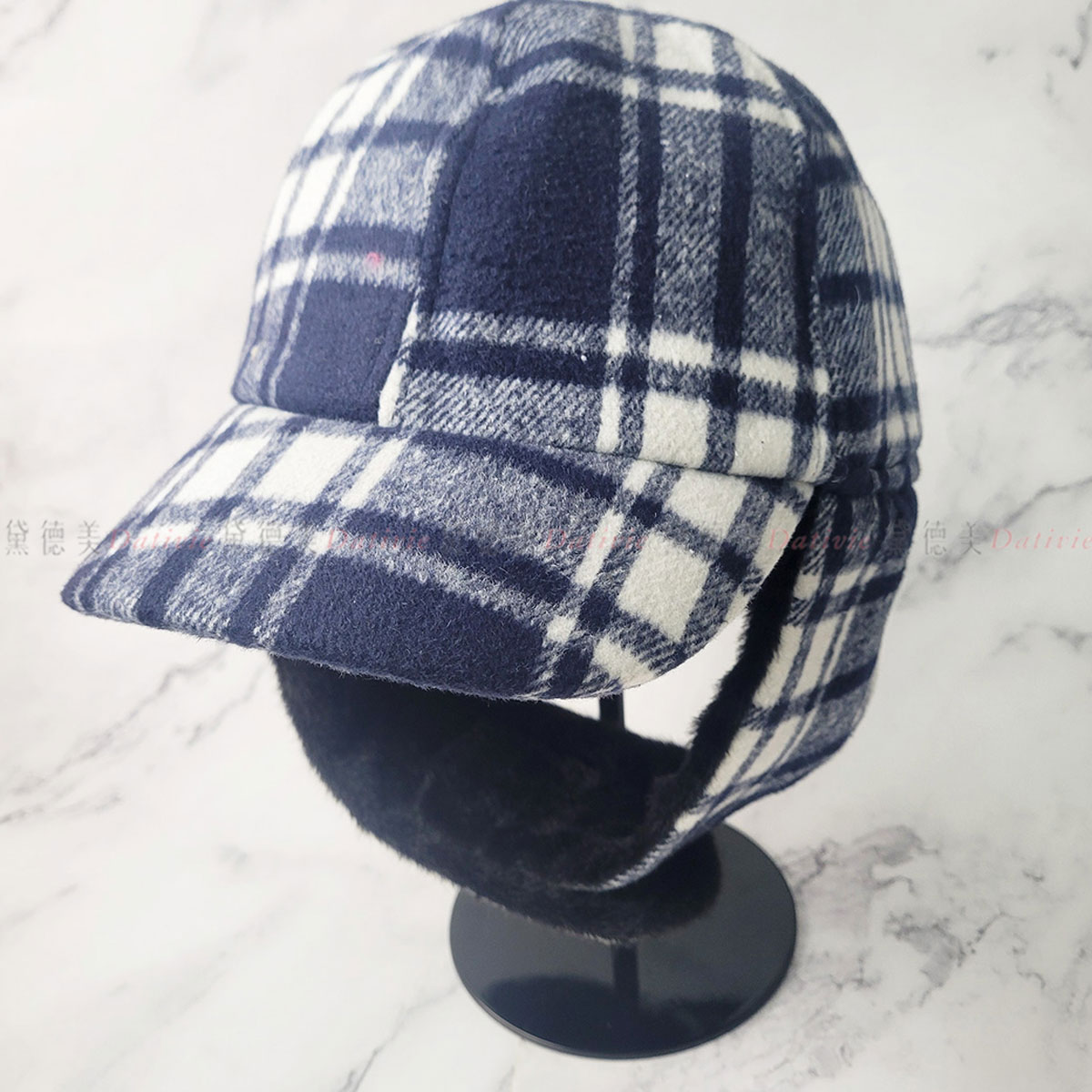 格紋 耳罩 保暖 鴨舌帽 毛帽