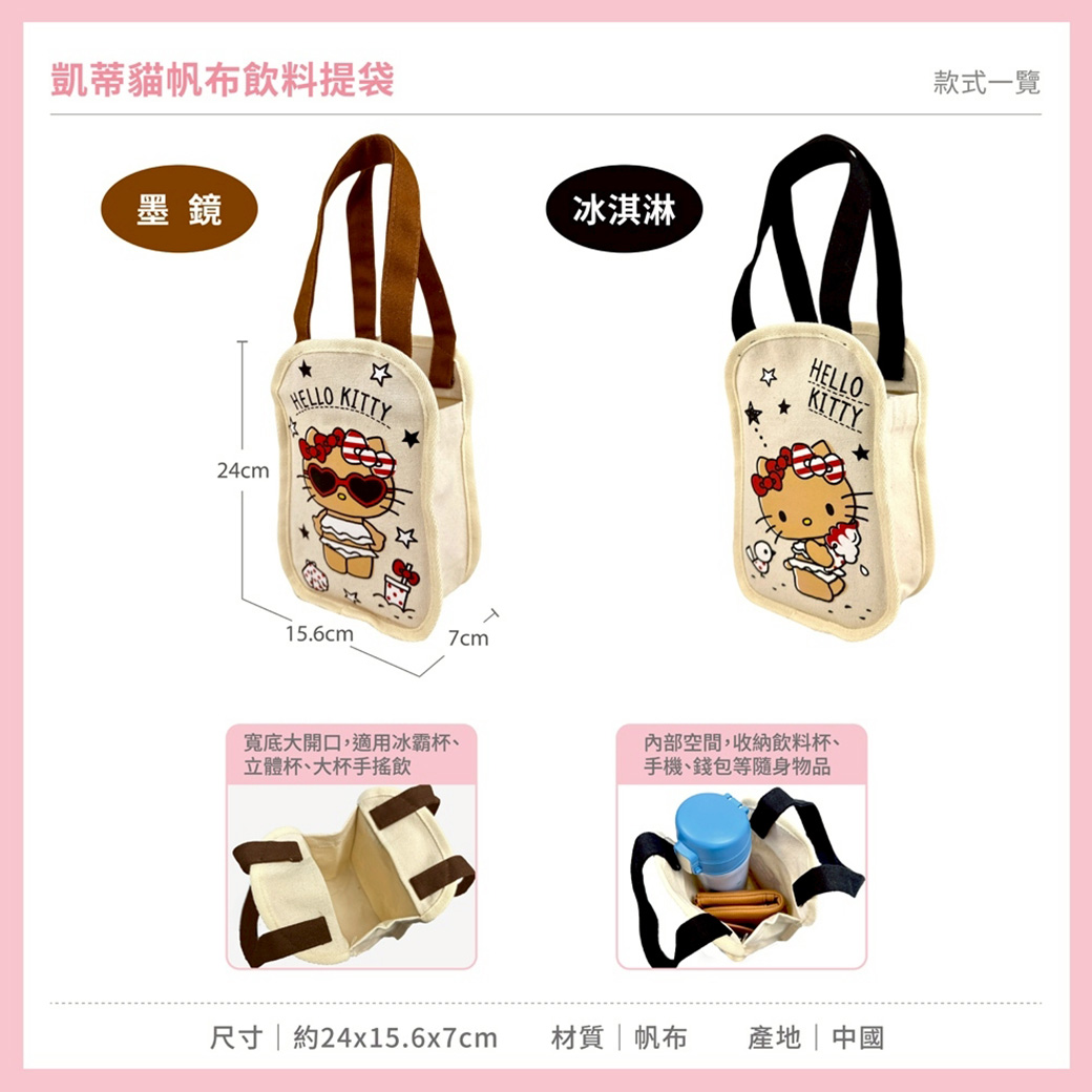 日燒 帆布飲料袋-HELLO KITTY 三麗鷗 SANRIO 正版授權