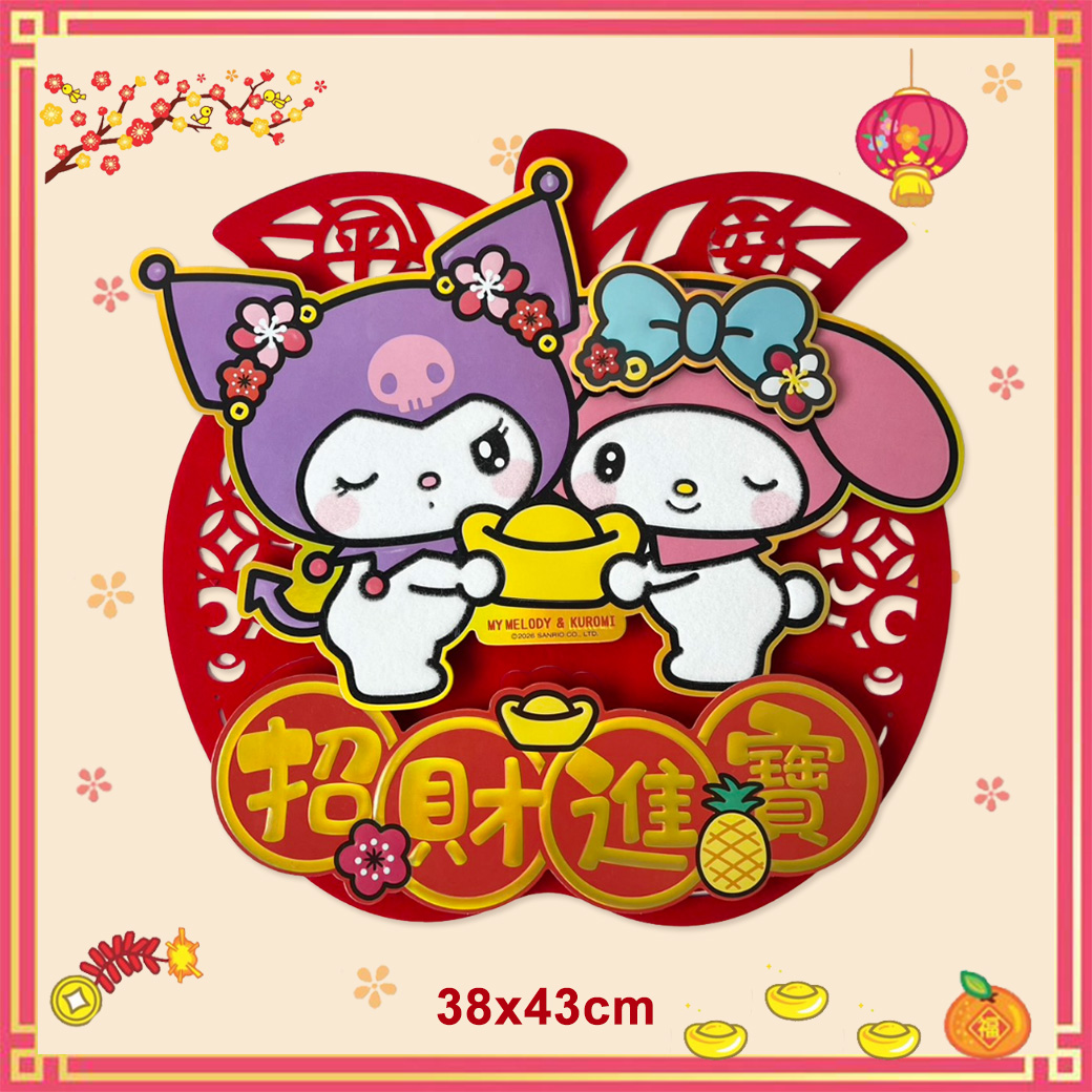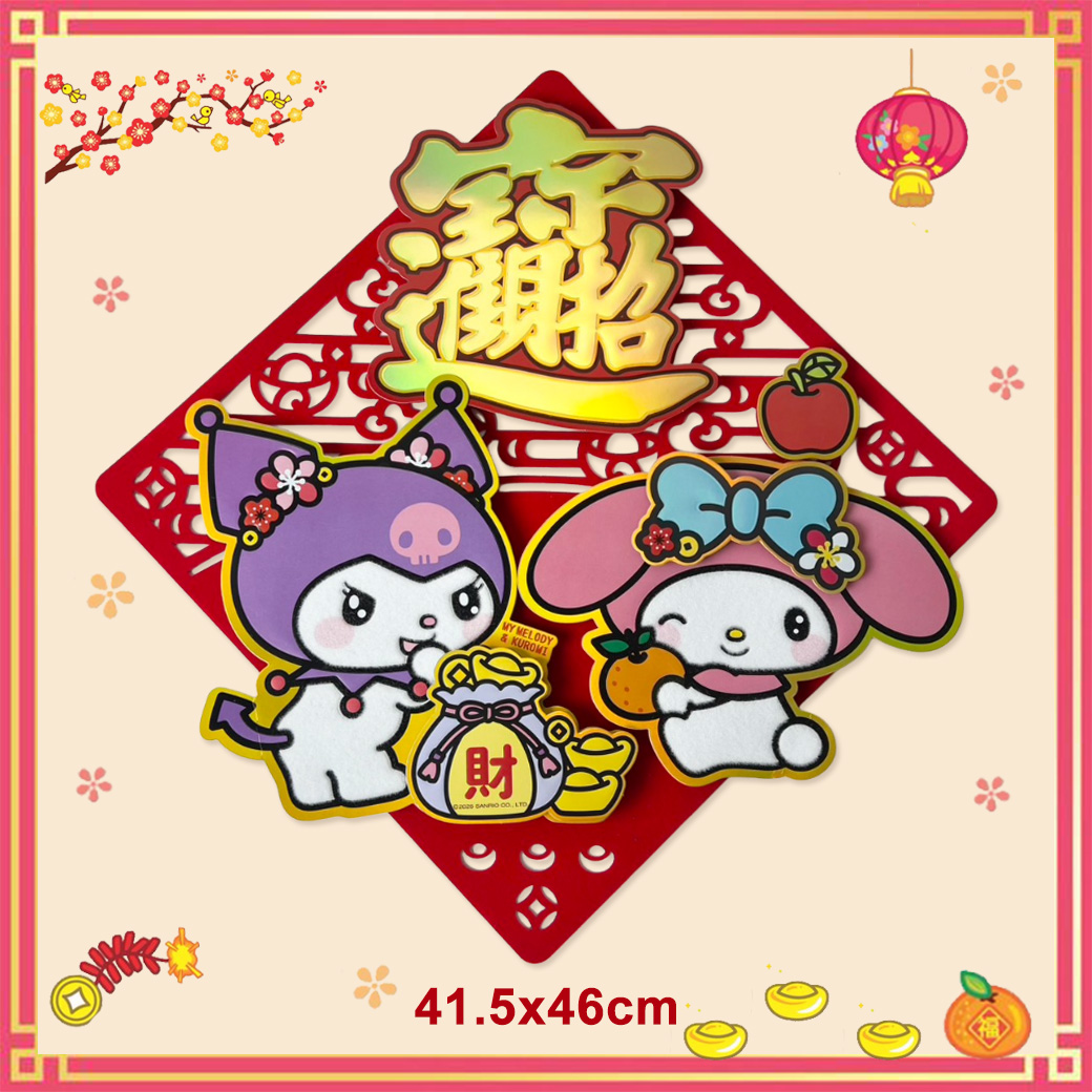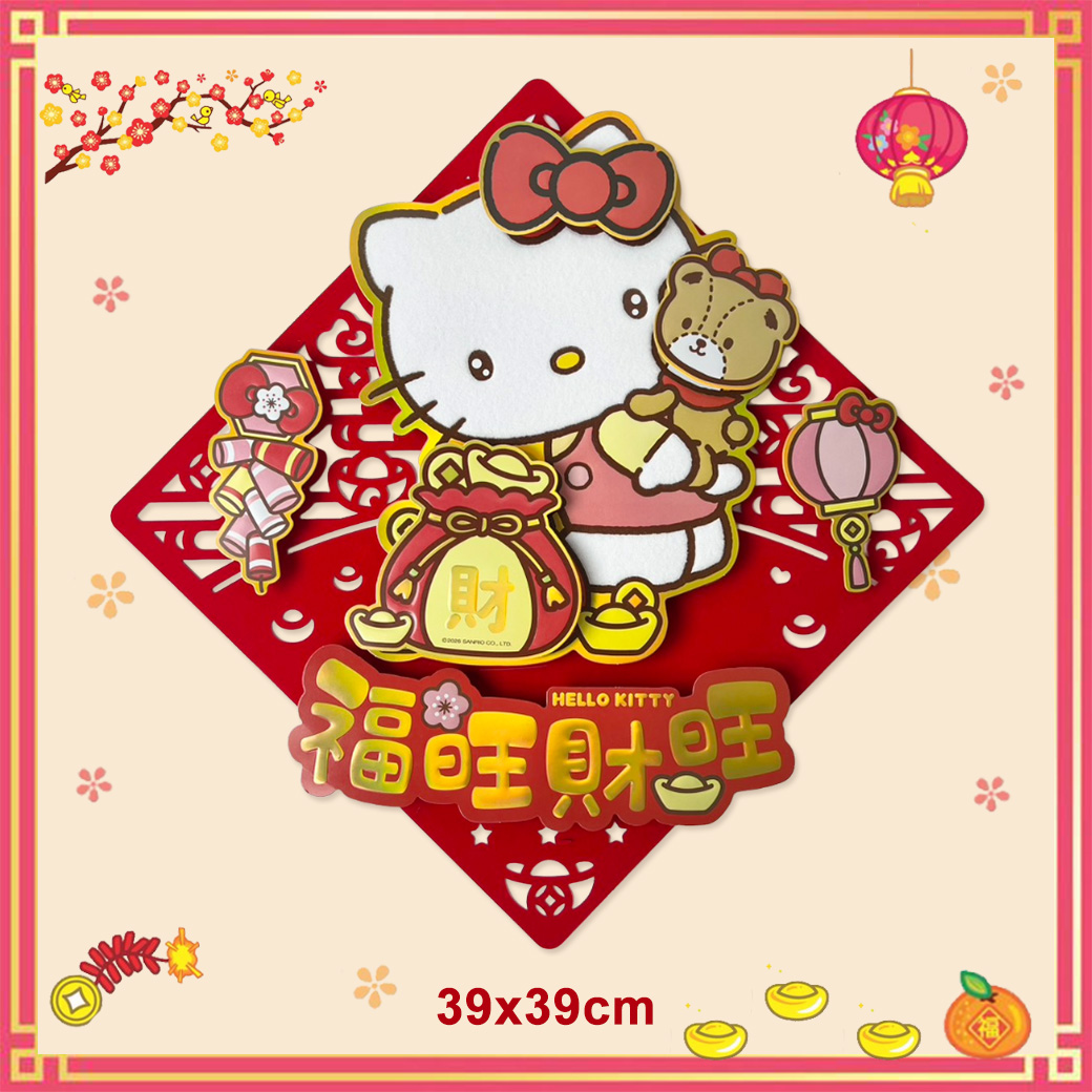 【尺寸】Kitty-福旺財旺:39x39cm / Kitty-招財進寶:59x29cm / 大耳狗-招財進寶:38x44cm / 大耳狗-單福字:39x42cm / 大耳狗-五福臨門:59x26cm / 酷洛米美樂蒂-招財進寶(圓):38x43cm / 酷洛米美樂蒂-招財進寶(方):41.5x46cm