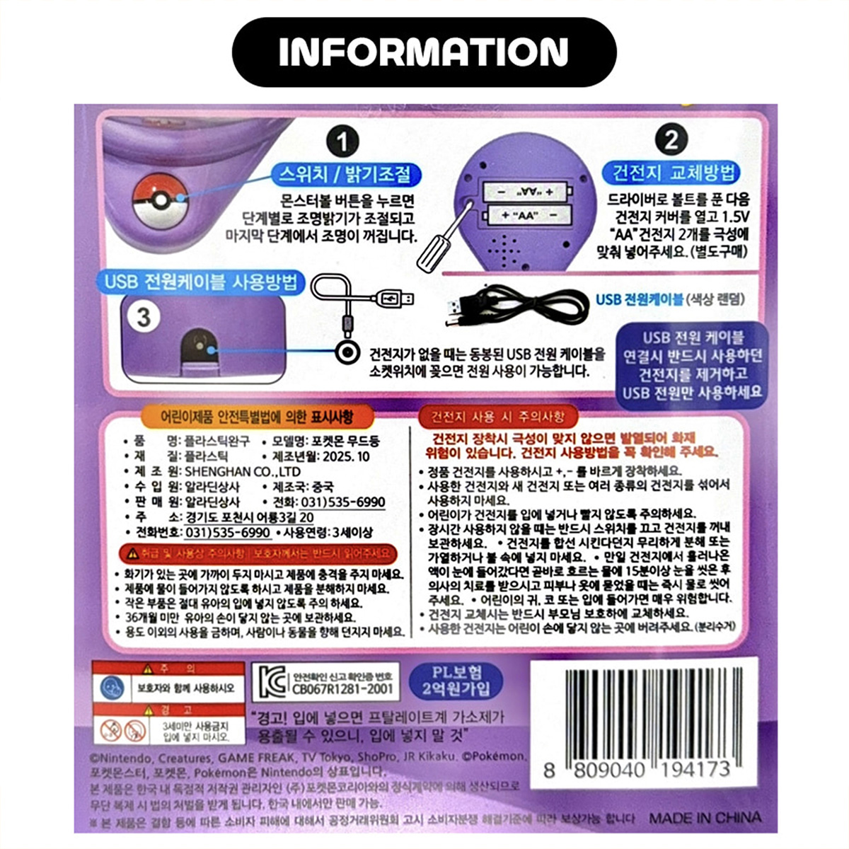 造型小夜燈-寶可夢 POKEMON 韓國進口正版授權 【款式】皮卡丘/妙花種子/可達鴉 【尺寸】約12x12x14cm 【內容】造型燈*1+USB充電線*1 【產地】中國(韓國監製) *使用AA電池*2(需另購)