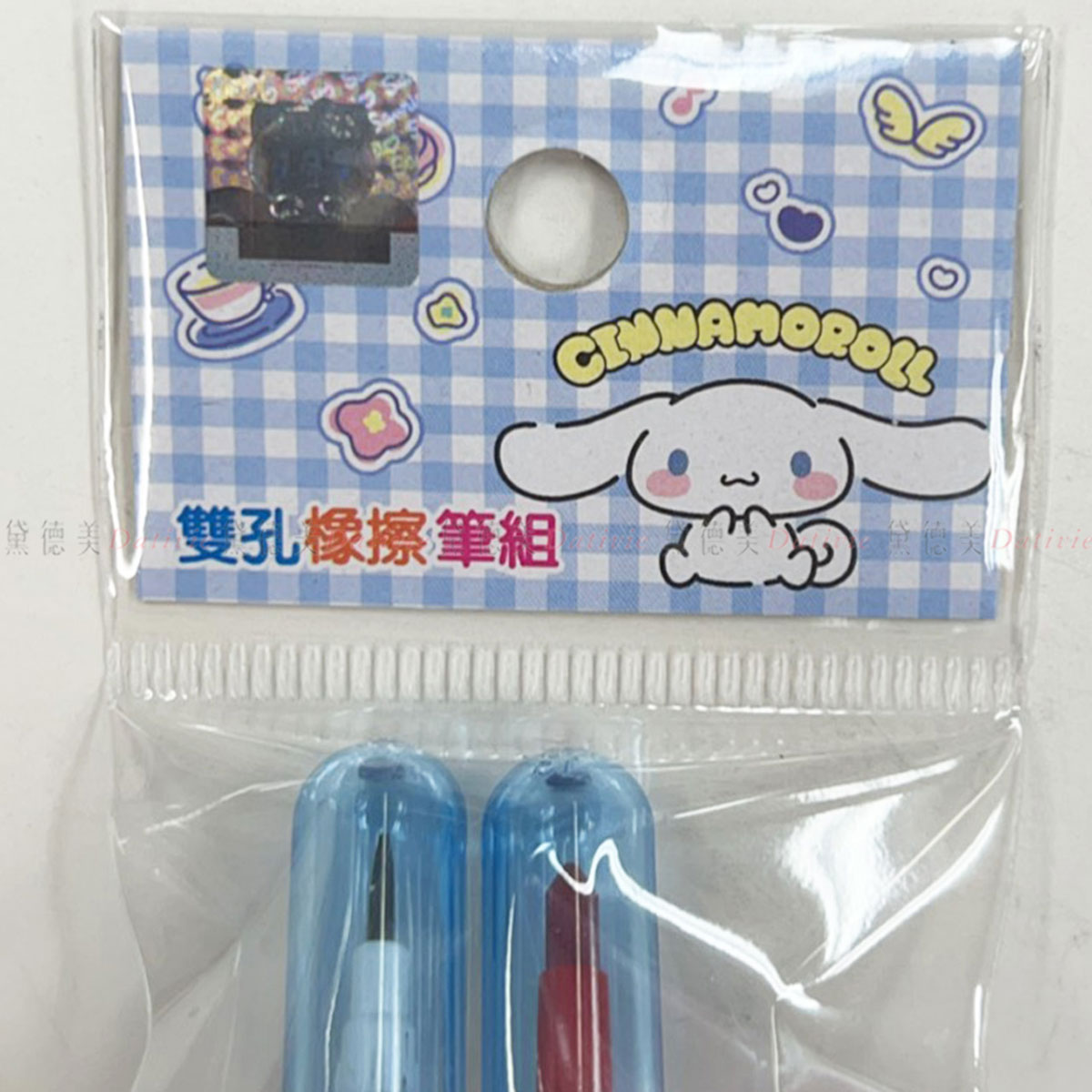 雙孔橡擦筆組-三麗鷗 SANRIO 正版授權 【款式】大耳狗/帕恰狗/庫洛米 【內容】免削鉛筆+彩虹筆+橡皮擦 【材質】免削鉛筆:塑膠、石墨 / 彩虹筆:塑膠、色蠟 / 橡皮擦:橡膠 【尺寸】筆:約 15x0.8cm(單支) / 橡皮擦:約 3x1.3cm 【產地】台灣