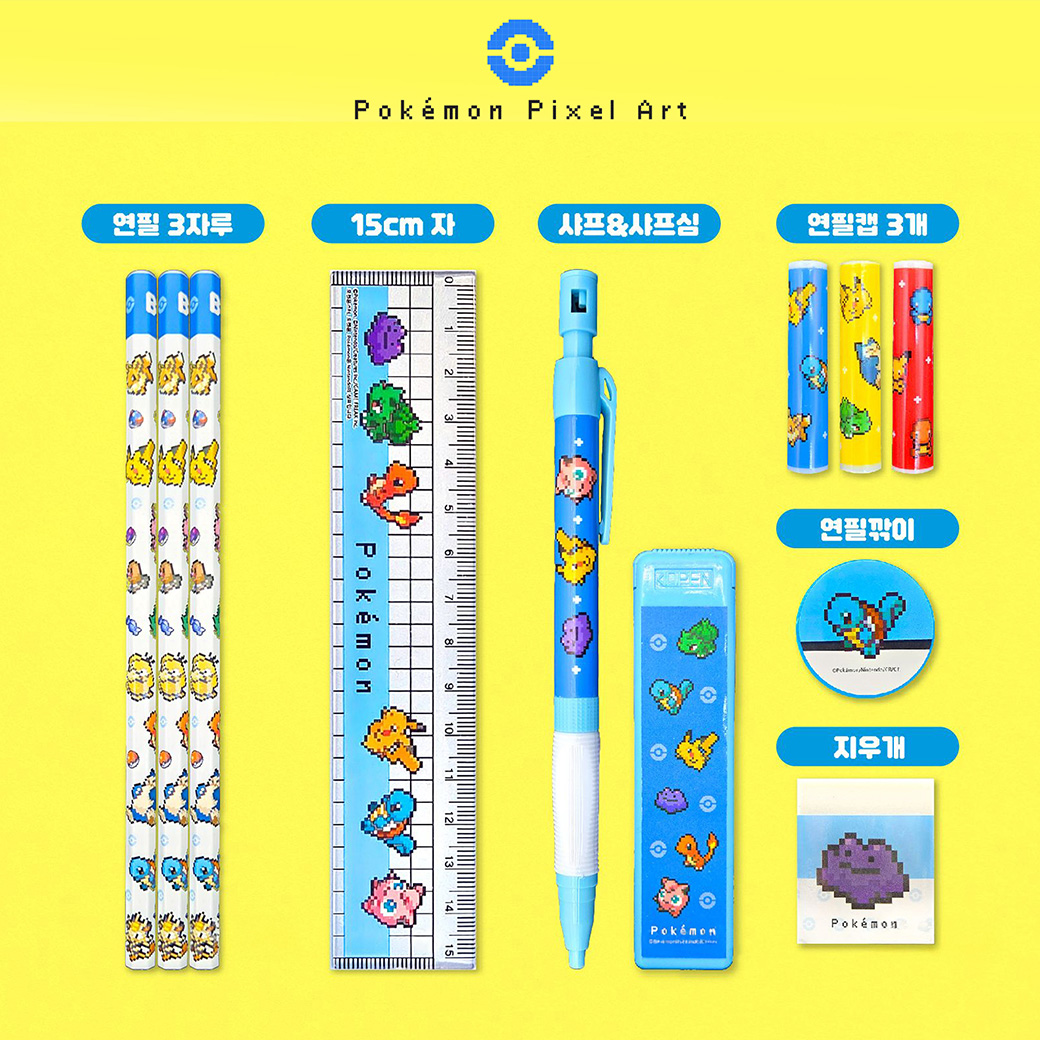 文具組-寶可夢 POKEMON 韓國進口正版授權 【款式】藍 / 紅 【內容】鉛筆*3、筆蓋*3、直尺*1、橡皮擦*1、削筆器*1、自動鉛筆*1、筆芯*1 【尺寸】約 160x265mm 【材質】木質、石墨、塑膠 【產地】中國(韓國監製)